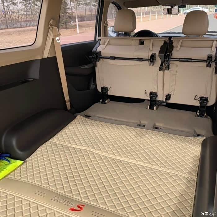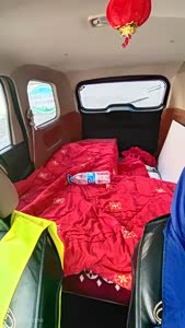 5座S 后排放平能拉2米长的货,翻折后能拉1.8米长。加装了个货架,可当床车用,二排放平和货架持平,30公分高,55公分宽,到副驾驶后面是2米。前置发动机后轮驱动,微面空间,比发动机中置后驱的轻客空间小。