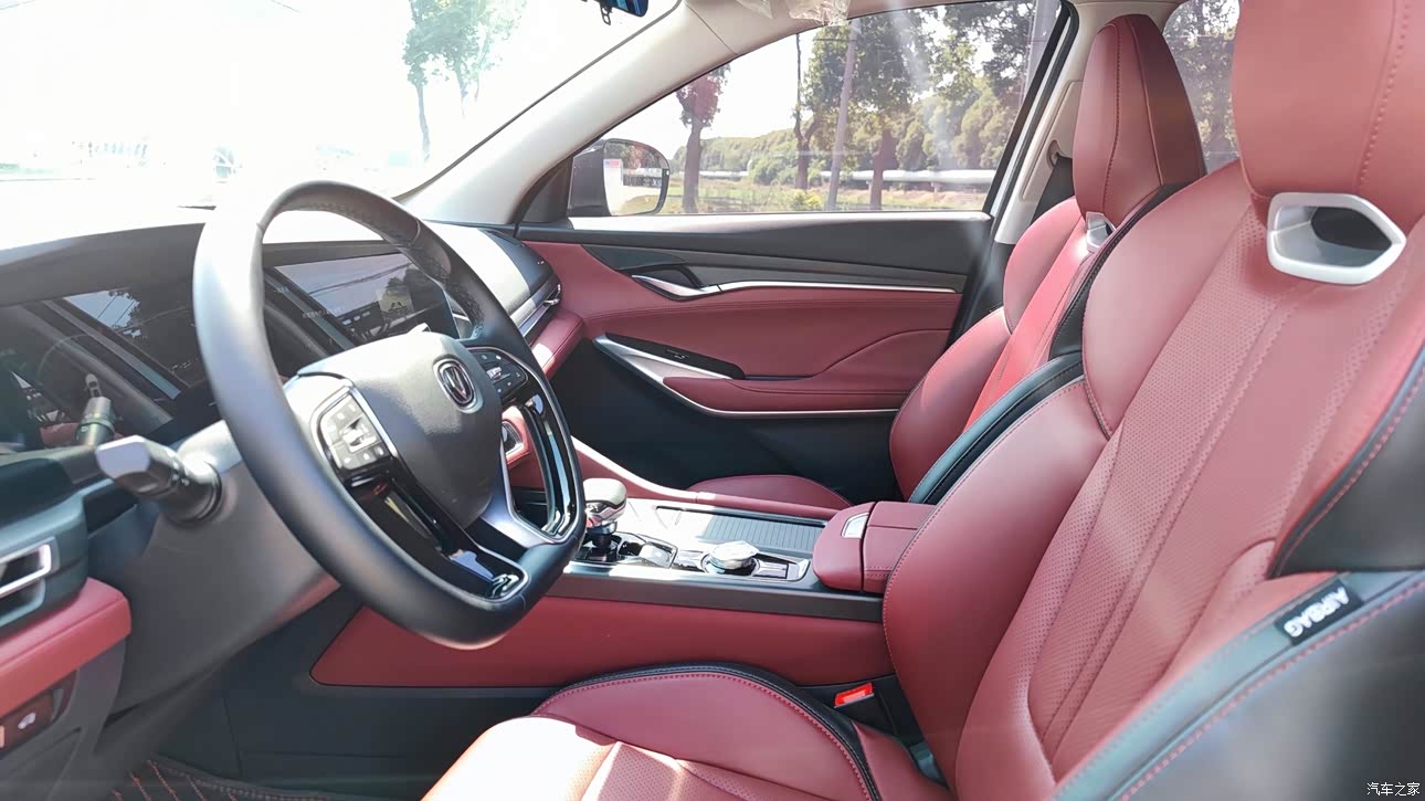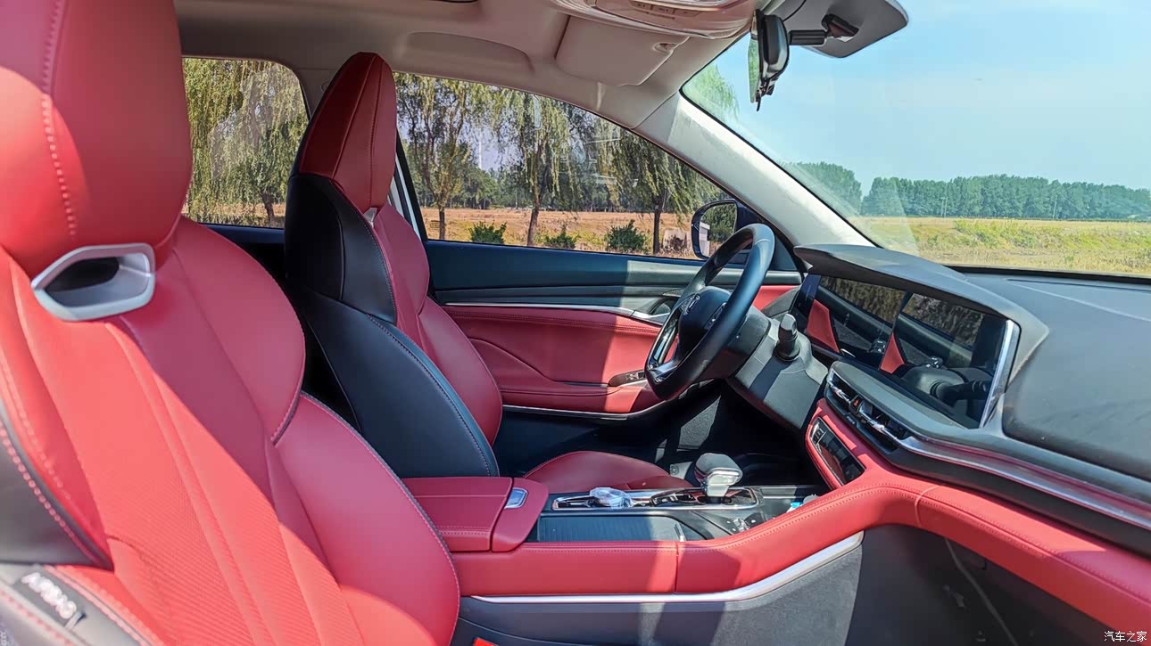 内饰的豪华感和科技感算是同级别里面的佼佼者了吧,同时配上大红色的内饰,还有运动座椅,高级感一下就出来了,不得不说这几年国产车在这方面的进步确实是很大。就是这个方向盘的造型如果换成二代的那种就完美了。