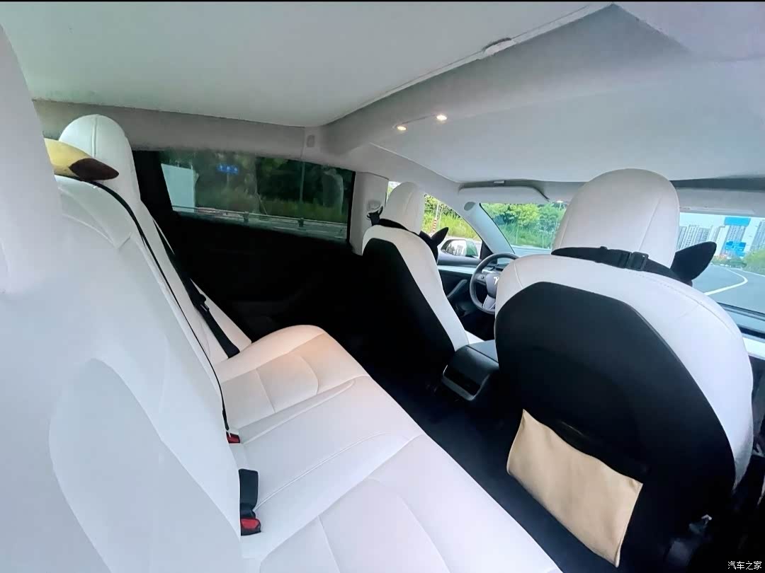 内饰设计的特别的独特,改掉了传统油车的那种物理按键。只有中间一个触控屏幕。车机的搭配的芯片是Intel的,使用起来比较流畅,不卡顿。我选配的白色座椅,这种材质还是比较的耐脏,比较的好清洁,不沾油。