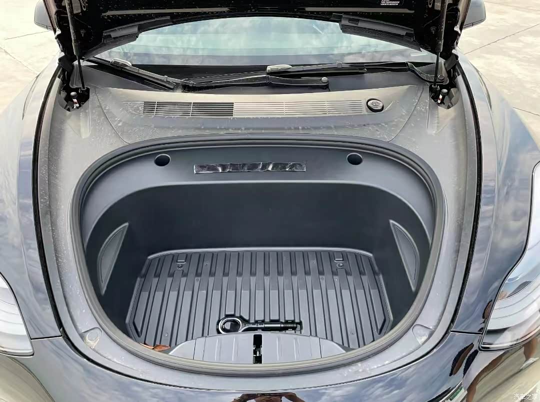 还有一个比较大的前备箱,这也很酷,像是超跑一样的前备箱。