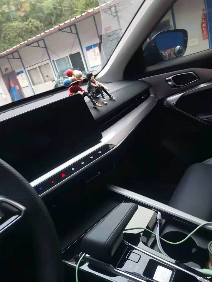 内饰设计我还挺喜欢的,大屏和仪表盘弄在一起,挺有科技感的,档把设计也有点小心思在里面,就是配色从里黑到外的有点审美疲劳