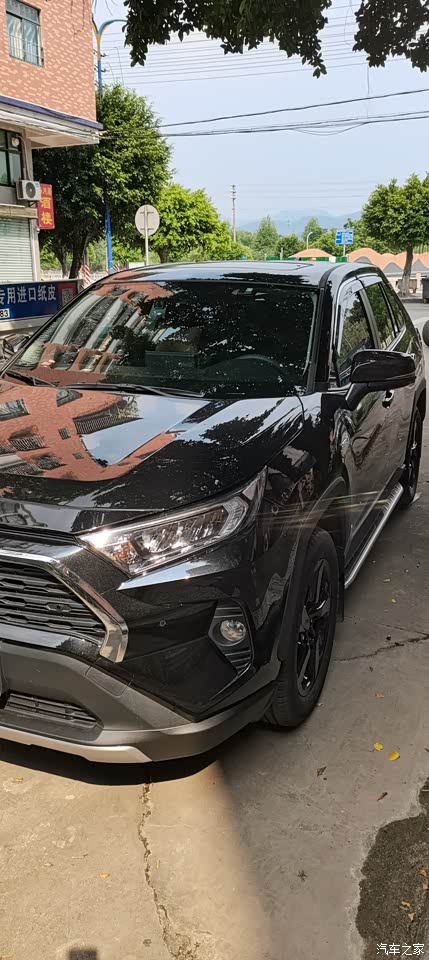 第一:感觉就是帅气,前一台车是白色,也没有其他颜色可以选,所以这次选黑色,没想到黑色居然没现车,等了一个星期左右。 第二:就是起步和低速阶段超级安静,速度上到70以上2.5发动机还是很够力的,至少没有其他人说的很肉的感受,舍得踩油门很有推背感,坐车的人会感觉眩晕。 第三个感受:就是整车的质感还是蛮好的,底盘悬挂偏舒适,发动机介入的时候感觉不实兀,发动机噪音也很小,基本上可以忽略。 第四:内饰还行,坐椅包裹性不错,方向盘和座椅也是真皮包裹,科技感不足,但是实用,也没有那些花里胡哨的东西,最难接受的是前排座椅有加热没有座椅通风,在广东用不上。 第五:当然还是油耗了,现在跑了1千公里,最低4.8,平均也就油5个油,这么大台车这个油耗已经很不错了。 说到买这个车也是偶然,8月12号女儿约了同学去南海千灯湖玩,我们两个大人也没地方玩,就去逛佛山车城,先看了斯巴鲁,不过修车的朋友不推荐就不考虑,又看了CRV混动,优惠挺大,性价比挺高,不过已经有一台本田了,也想换一个品牌的车试试,看荣放之后觉得还好,丰田混动从97年开始到现在技术已经非常优秀了,我们只是普通小屁民,买车呢也不图什么面子,就是用车省心,开起来还省油,平时约朋友吃饭跑个百八十公里也没有什么关系。 谈价格比较累人,销售是很敬业的,能有的优惠肯定不会告诉你,你得一条一条去砍价,因为要上公司户很多优惠没有,不过那点优惠也不在考虑之例,关键是能抵税,最后砍到差不多就下了定,等了一个星期才去验车,付完尾款,到二十二号才选号提车。 在网上买了踏板(老友建议的,防止老婆开刮到两边的车门),前脸镀铬饰条,后电动尾门(1千6,能接受)车窗晴雨挡(有点鸡肋,装了有点用又不好看),前机头盖换液压顶杆,后备箱置物架(原车居然没有)