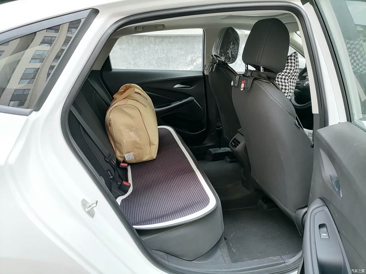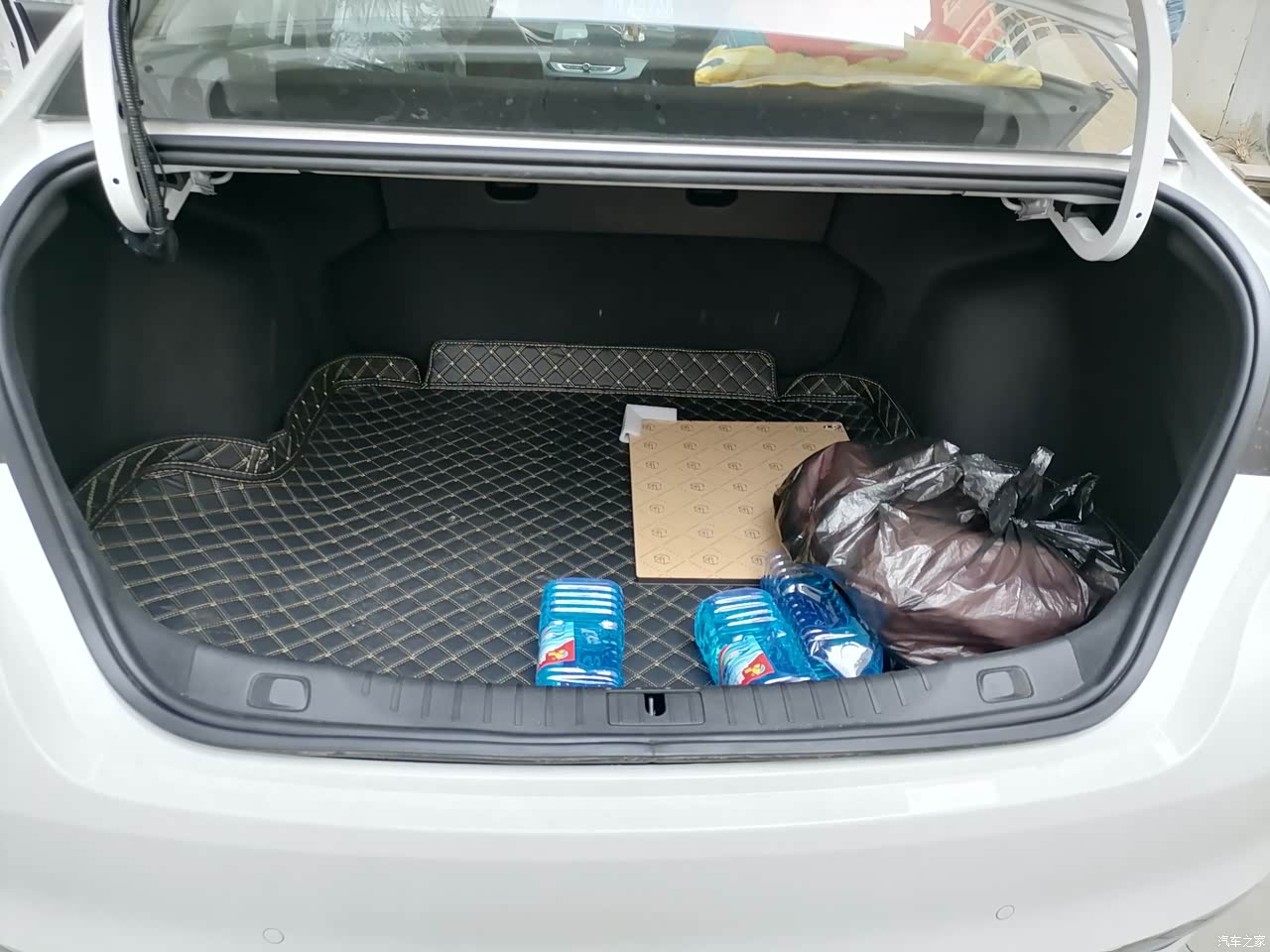 第二排的座位空间膝盖到前面的座椅有两拳半的距离,头顶的空间有两拳和君威的空间是相同的,而且这款车的坐垫柔软,坐着挺舒服,后排有专门的空调出风口,还有USB线给手机充电,出去长时间坐车旅游,玩个手机又方便又舒服。后备箱下面的垫子是我自己在网上买的,后备箱的空间规整平坦,放东西很容易,而且后备箱盖子的支杆还不容易占用后背的空间,后备箱设计是很合理。