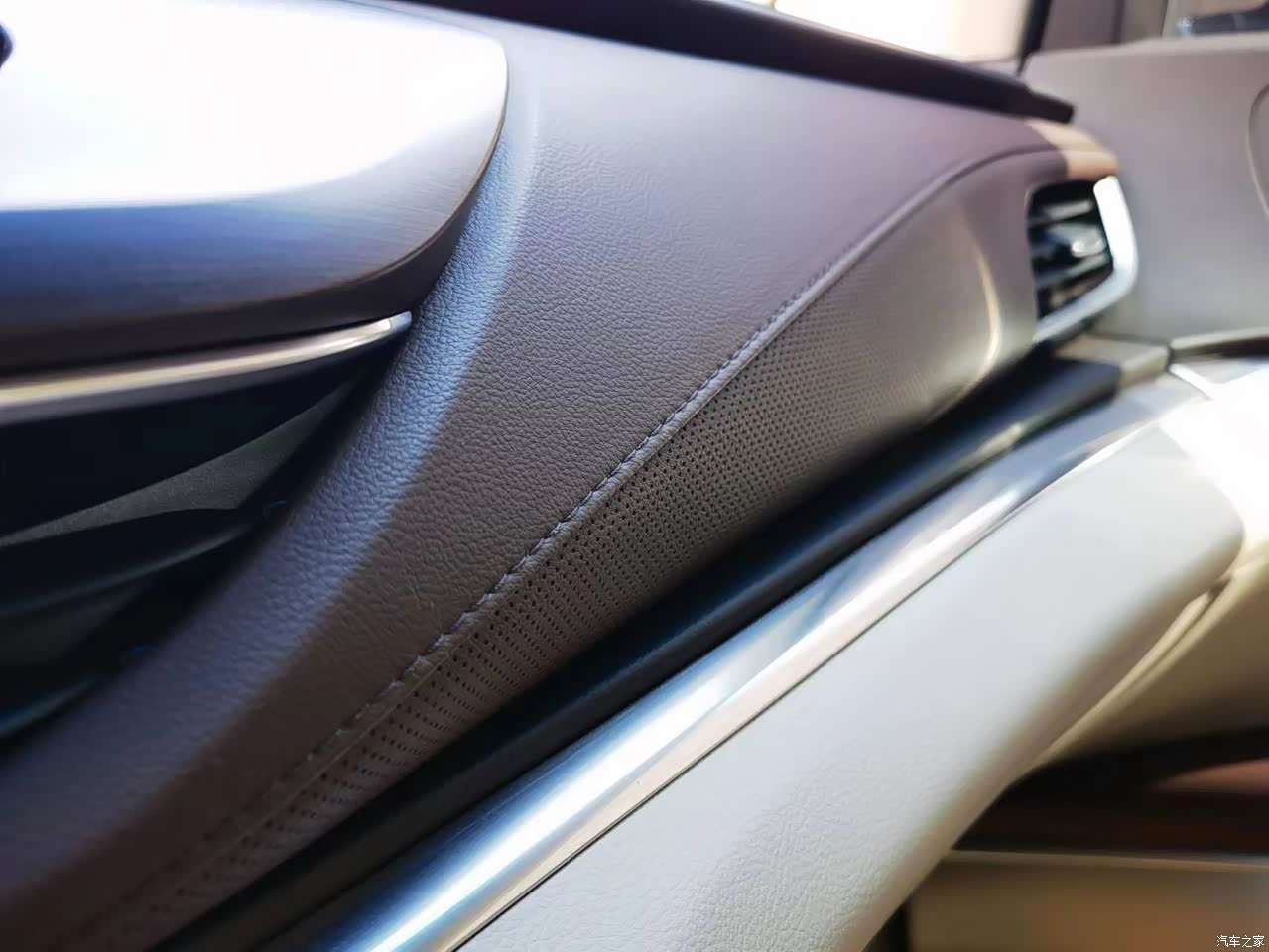 内饰这方面大面积采用的都是真皮材质,摸起来软软的质感很好,也很上档次,全车基本上没有塑料感,从这方面能看出来用料很扎实,能摸到的地方都是软质的,内饰整体看起来档次感很高,是一个米色的内饰,做进去也不是很压抑,很温馨的一种感觉