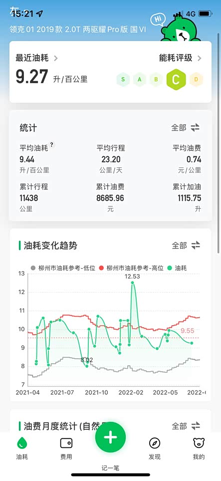 我市区/高速 2/8开,表现8.8,小熊记录9.4。我觉得油耗还能接受,毕竟这个动力摆在这。