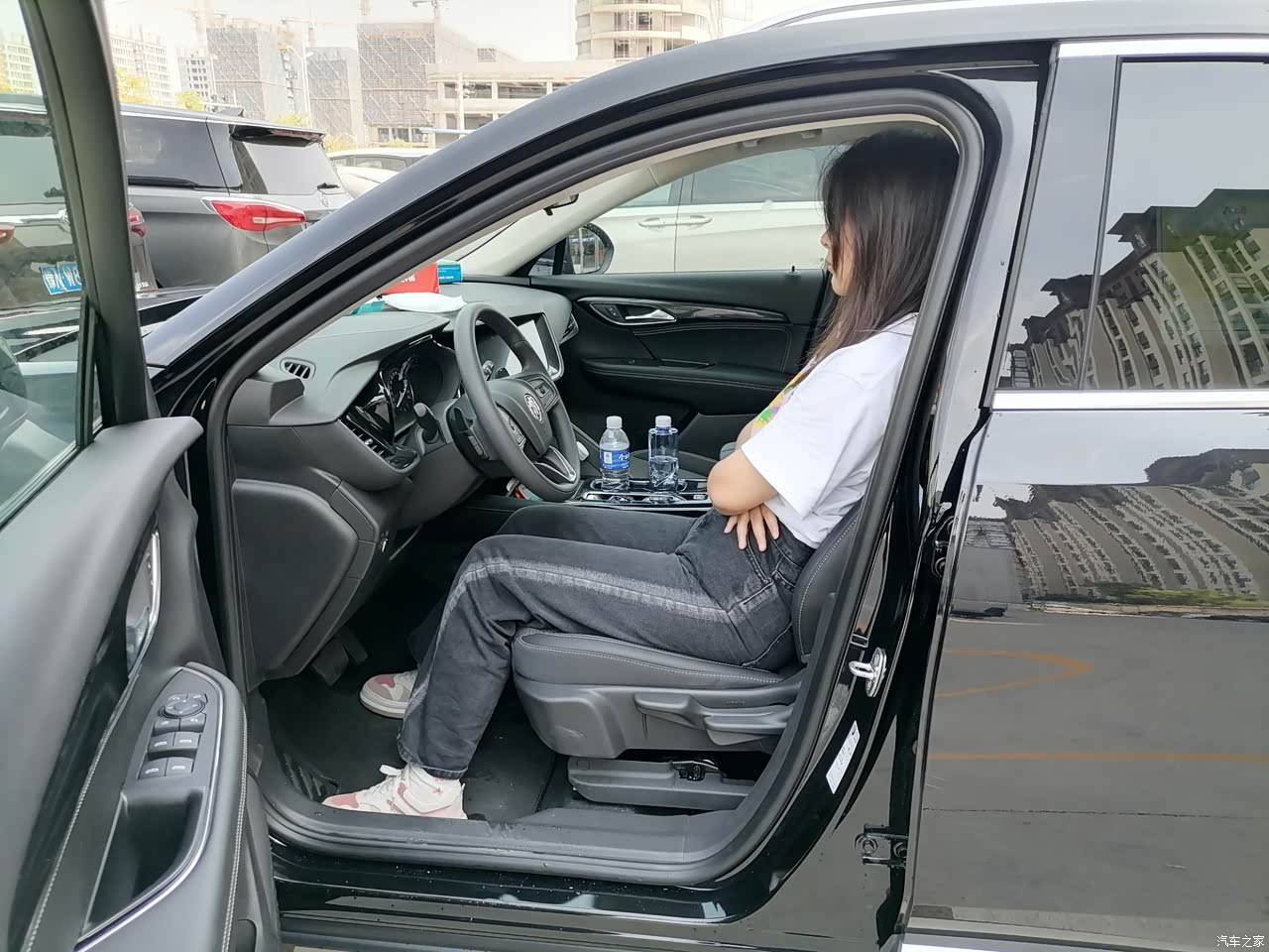 我的身高是一米七二,体重60公斤,做到昂科威S车里面,感觉到车里面还是很大的,特别是膝盖的空间,足足有两拳的距离,头部的空间还有两拳。车子的档杆是电子按键的,省出来了很多的储物空间,可以放两瓶水,前面还可以放一部手机。因为我买的配置是精英型座椅是手动调节,有一点不方便,缺少了一点档次感。