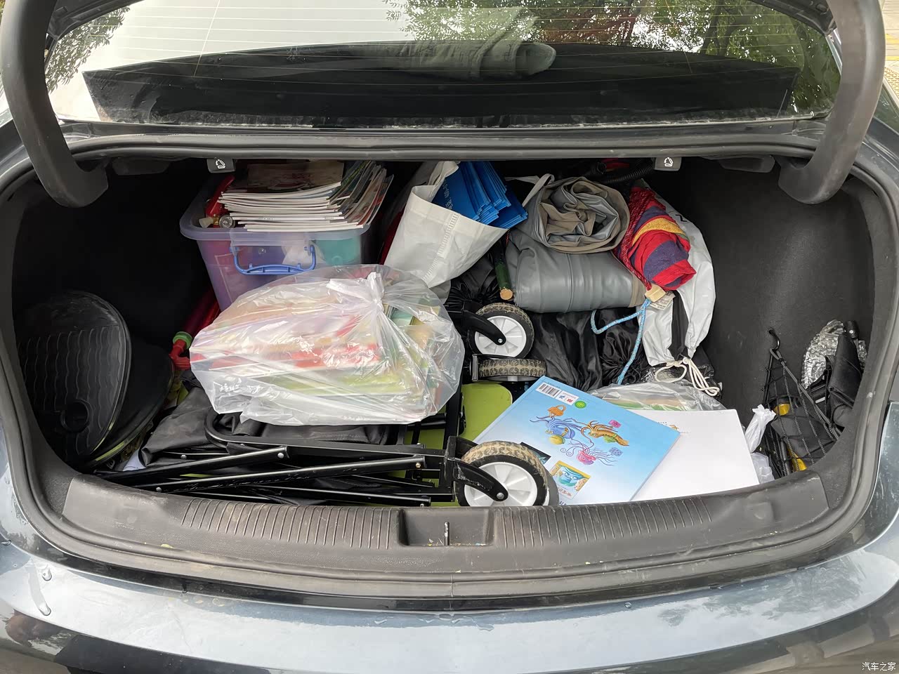 看下我们的车后备箱就知道后备箱容积是不是可达到441L,看下是不是可以放下不少物品呢, 家用日常是足够了,基本上都是两个孩子的物品。