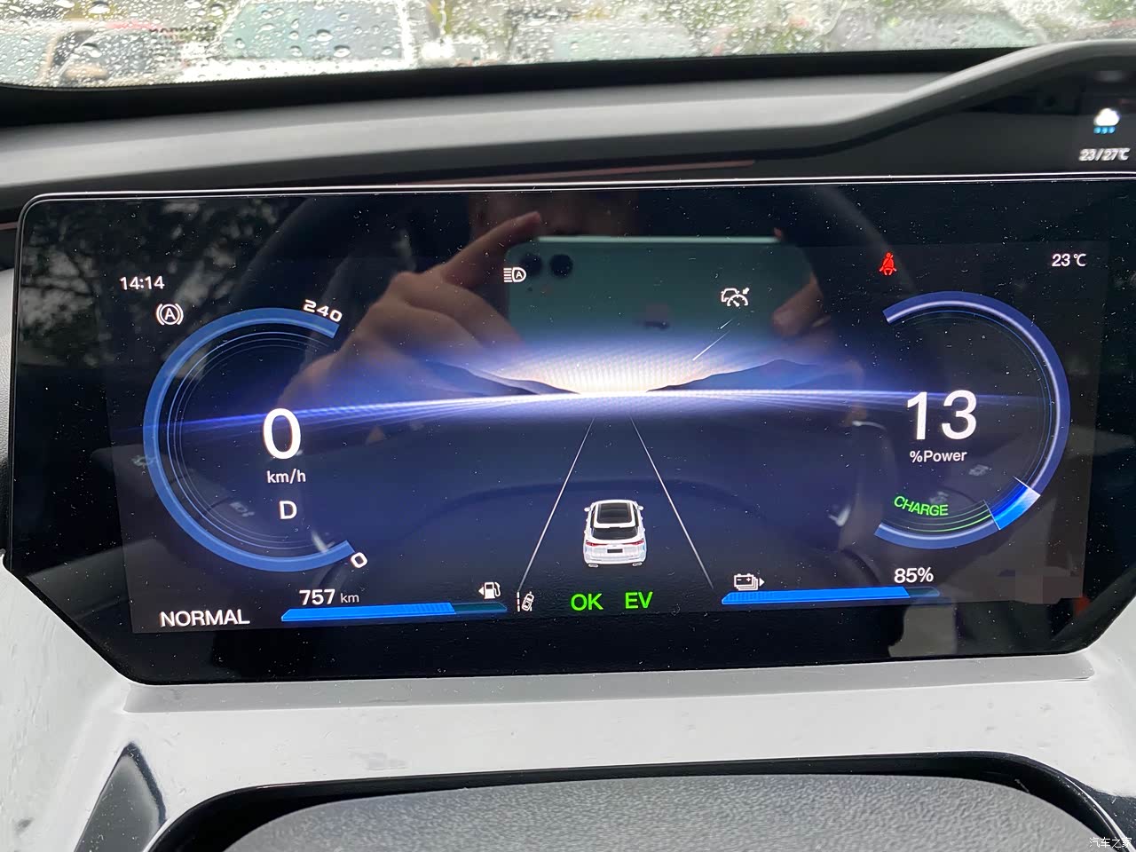 最爱的仪表风格,科技感十足,右侧是功率表,可以表示当前电池处于处于输出还是充电状态。