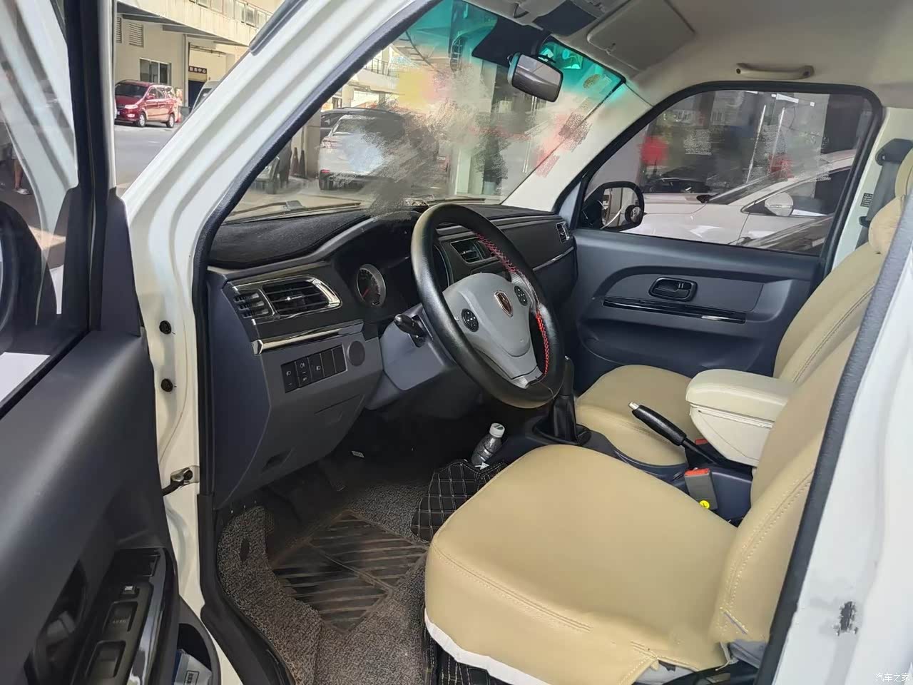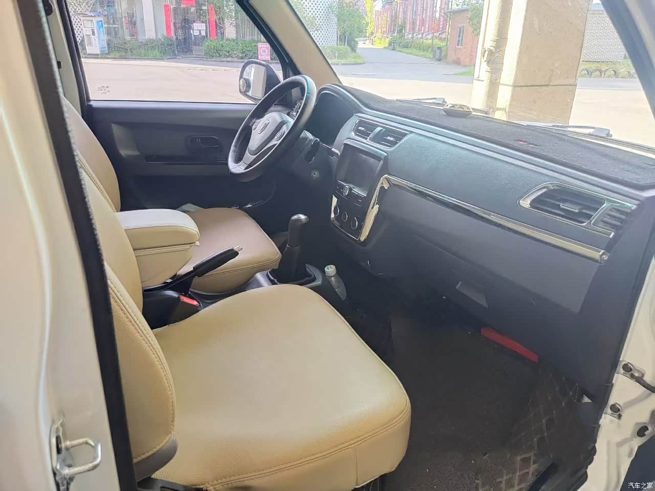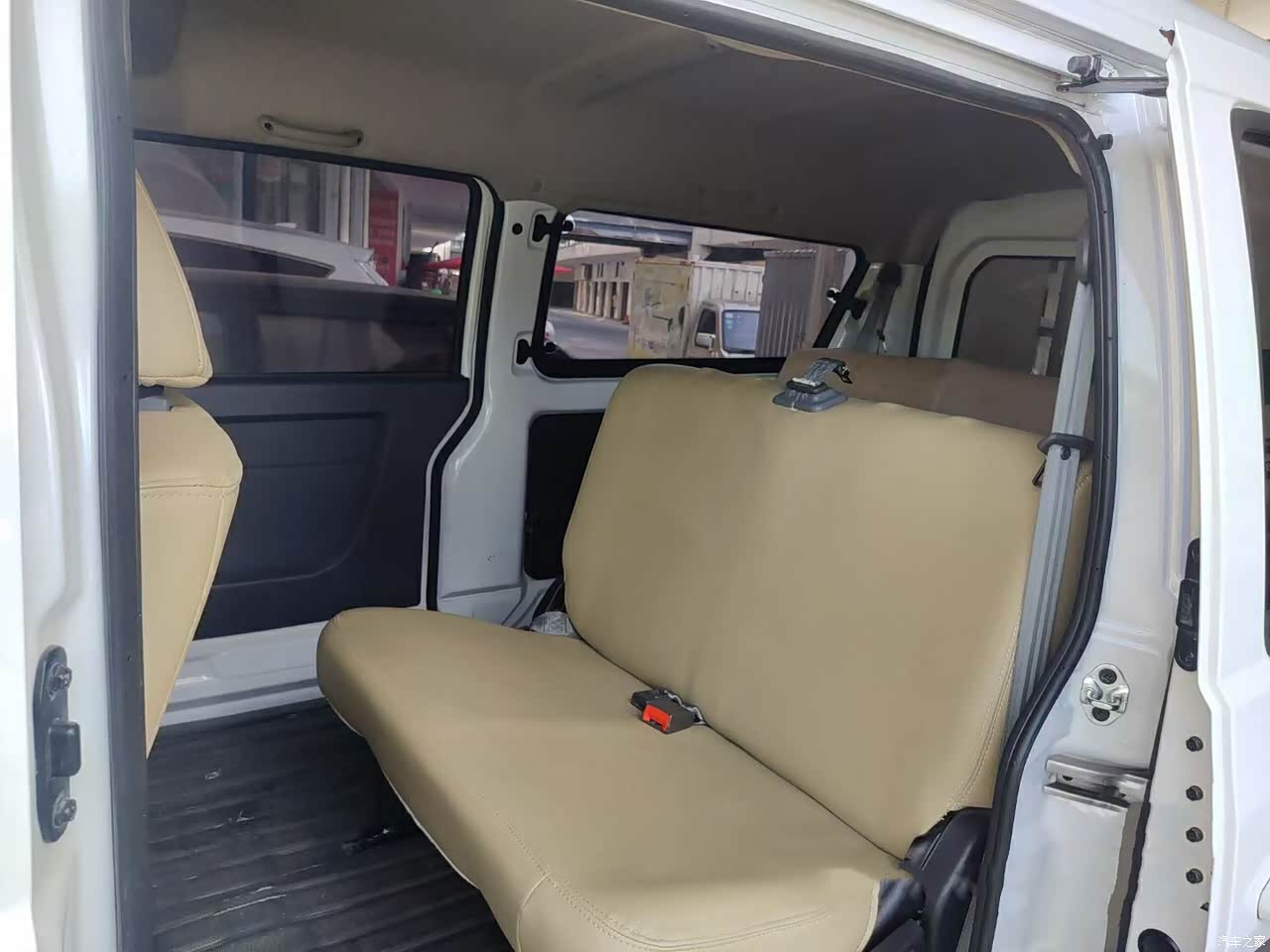内饰设计的简单。面包车嘛设计洁简也挺好,储物空间很周到两边车门都可以放东西,有时候一个人出去送货,有什么东西直接放副驾驶座椅上,开车无聊时放点音乐听也可以轻松一下,充电接口位置充电也方便,