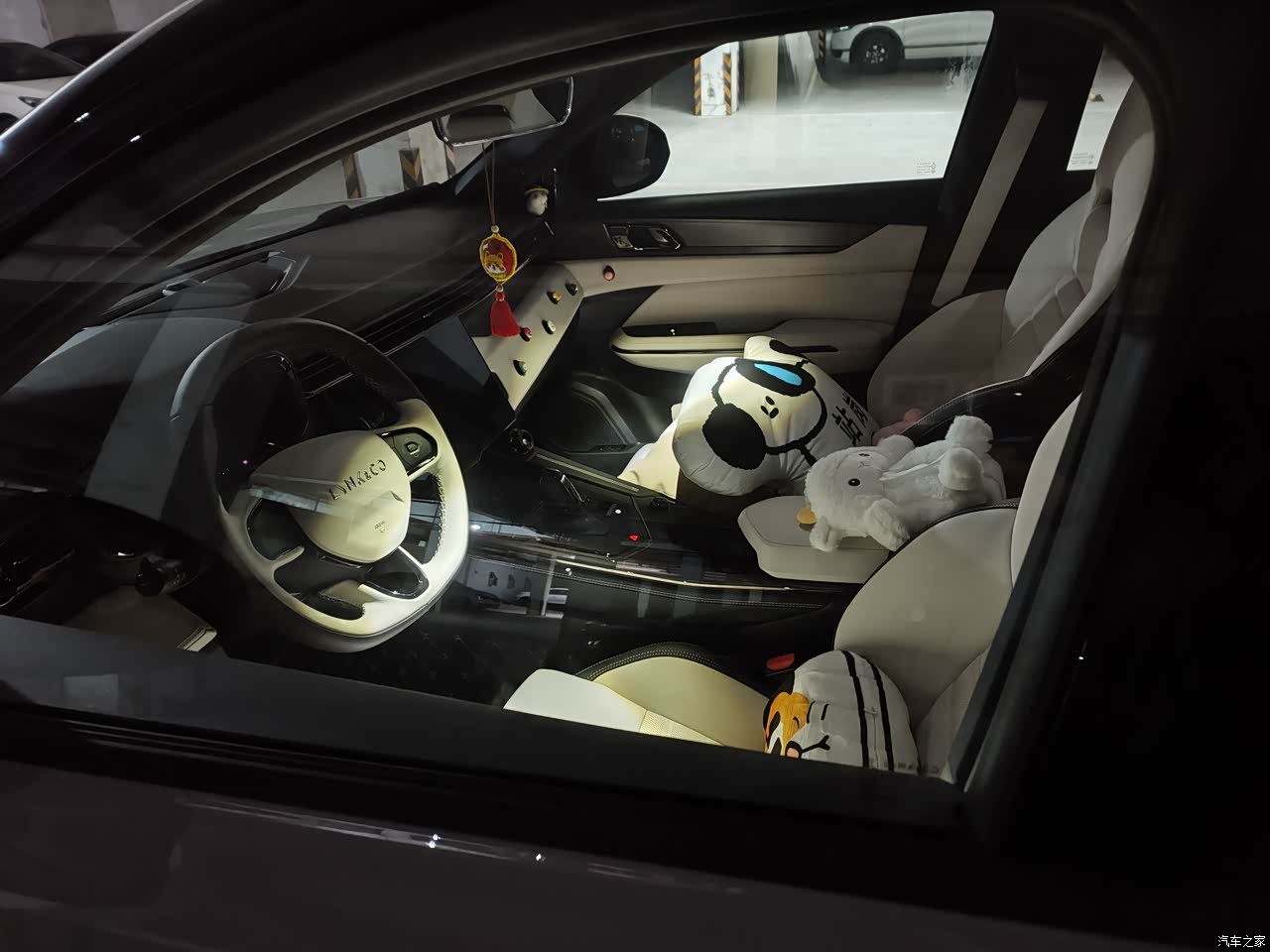 白色内饰很满意,车子刚到没多久就已经被老婆放上了很多东西,我俩都很喜欢,当然也有很多人不喜欢白色内饰, 因为内饰放弃晨曦选择pm+,担心白色内饰容易脏,官方是说比较抗污,我反正不太担心,自己稍微爱护一点也不会脏到哪去,语音控制还行,没碰到过卡,我放的车u载盘,刚启动的时候会说读取不到,过一会就可以了,氛围灯效果也还不错