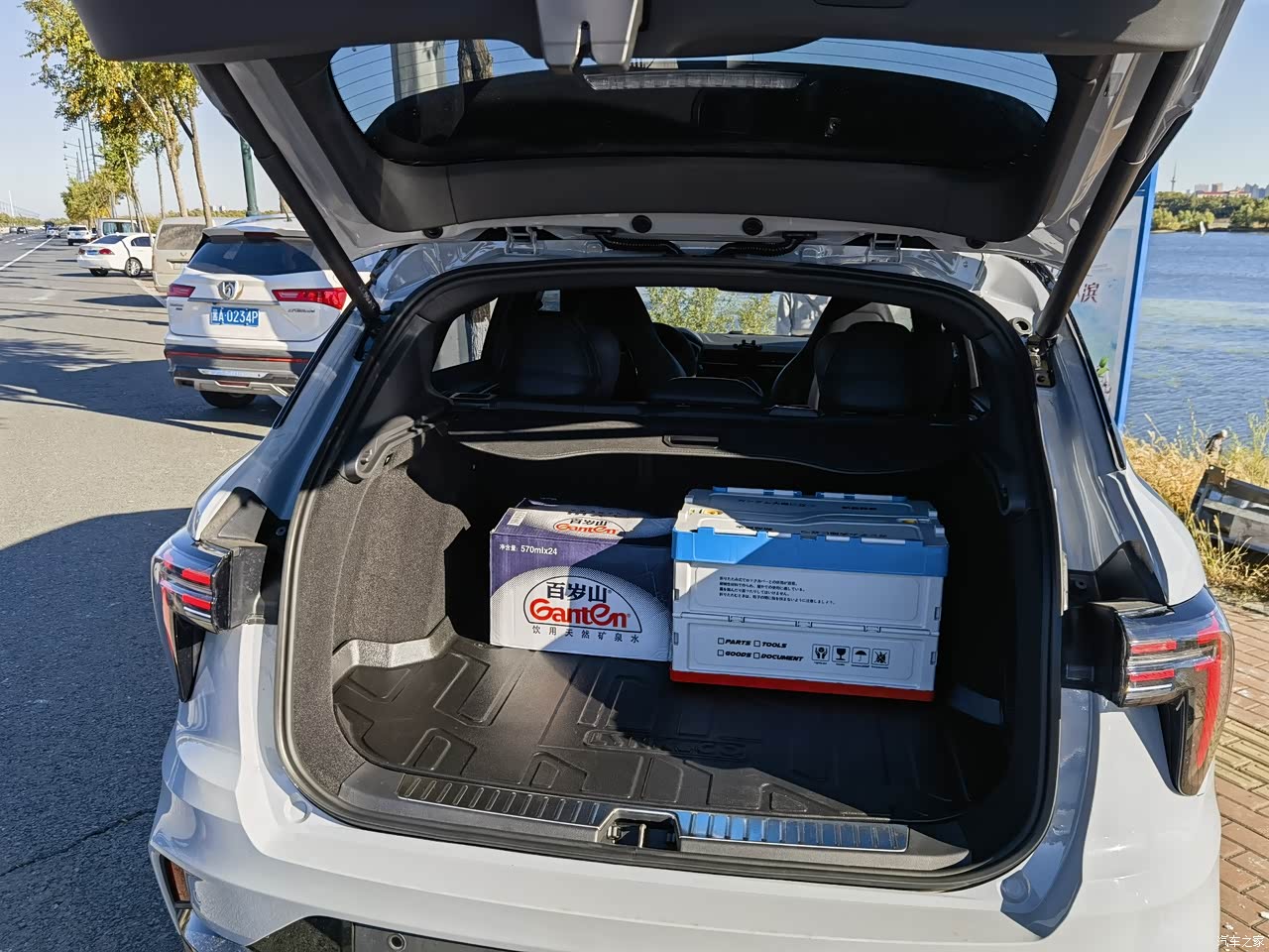 空间还行,这款车在同级车里空间一般,能满足需要,前排储物空间一般,档把下面没额外的储物空间,手套箱空间较小,后排座椅下放有储物袋,后备箱空间较大,且配备了电动后备箱,角度可以在车技系统内进行调节