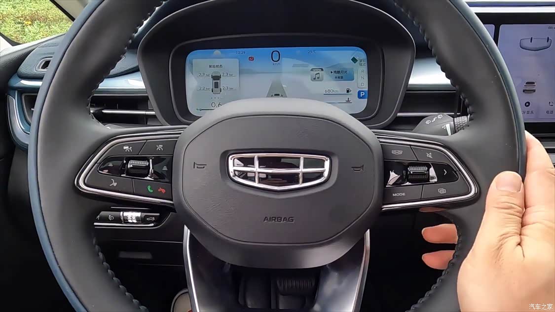 内饰就是吉利一贯的设计风格呗,见过太多的吉利车了,内饰都相差不大,也没啥惊喜的成分,不过这个银河系统还是不错的,流畅度很高。