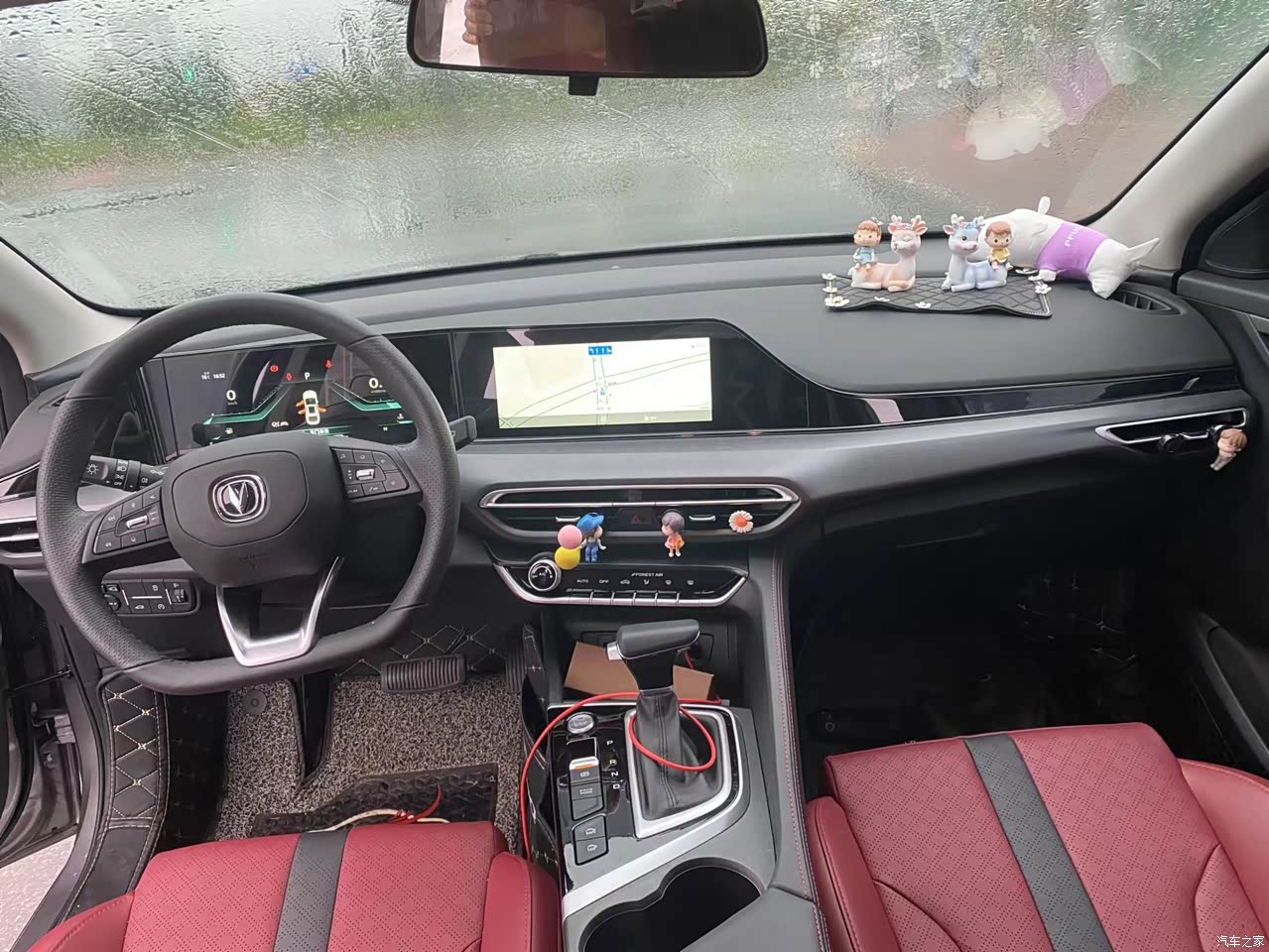 内饰选的是黑红色的综合内饰,能够给我一种高级感,全液晶仪表盘显示信息完整,搭配中控的设计看上去比较协调,档把的握持感较好,按键布局合理,有一定时尚感。用料方面还是蛮用心的,车门采用了相对柔软的软包设计,触感舒适。