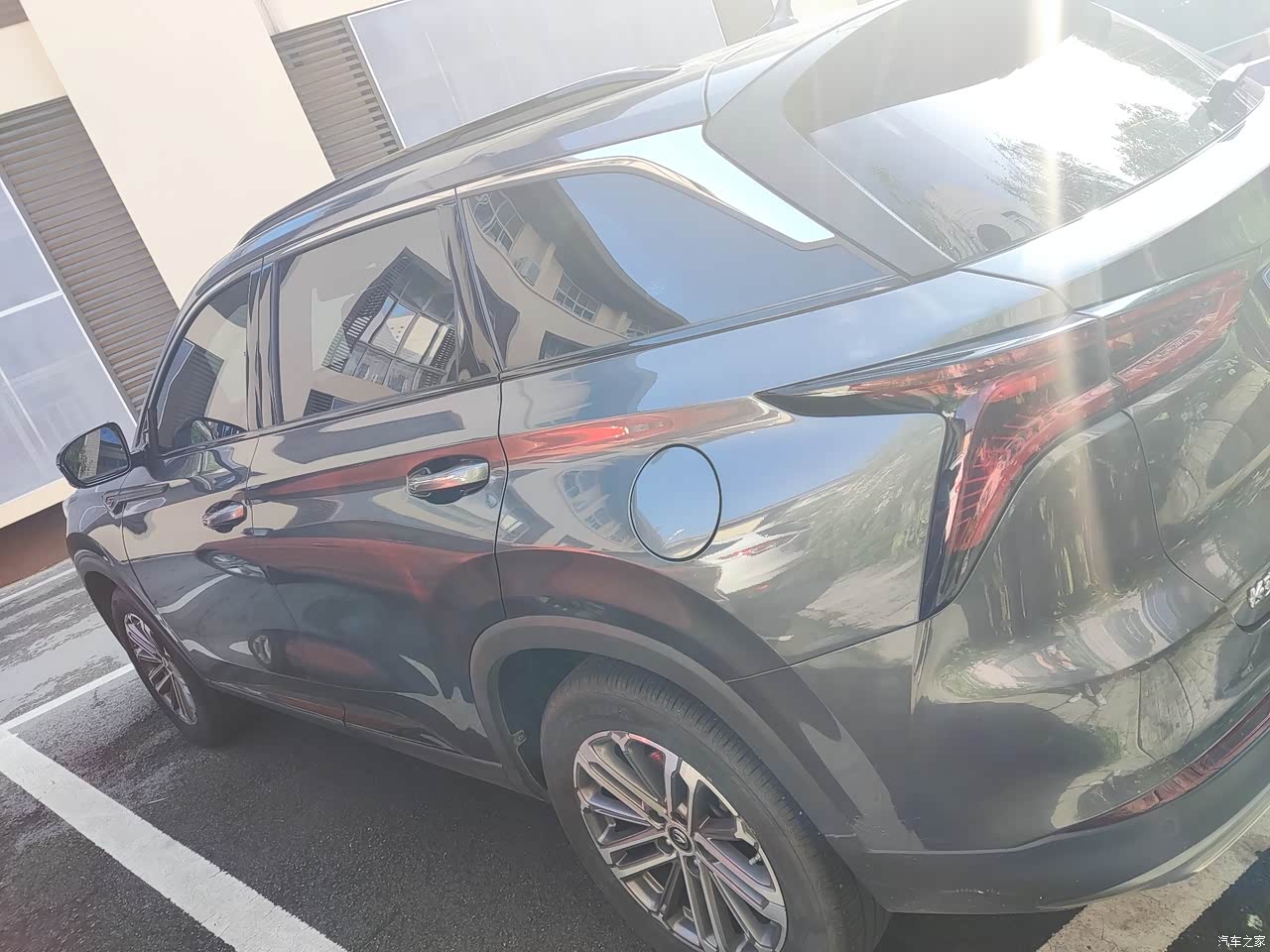 车头设计大气敦实,车身侧后方最好看,有设计美感。对于车身侧面红色装饰条已用贴膜改成亮黑色,个人觉得更符合整车颜色搭配
