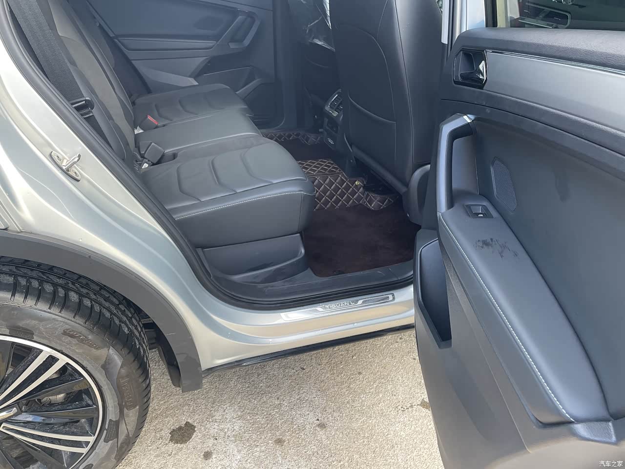 最满意的可能就是途观这个车子的外观,外观是属于那种比较商务的suv.整体感觉比较霸气。前脸也是格栅前脸的这种家族设计风格。比较喜欢。轮毂对比之前的轮毂要好看一些。整体车子内饰还是比较宽,特别是后排空间坐三个人都不得拥挤。