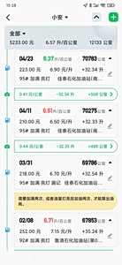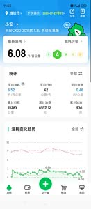 最近的油耗表现还是可以的,基本都是维持在6.3左右,但是这两天保养了以后油耗突然增高了不少,不知道是不是因为刚刚保养完,机油粘度很高,车辆润滑的没有原来老机油的润滑度,或者是因为机油添加量过多引起呢!保养完车辆后的这一箱油行驶的里程在相同油量消耗的条件下明显减少了不少,具体的原因还不清楚,再行驶一箱燃油再看看什么原因!机油尺检查了一下,超过了机油尺刻度上限了,所以怀疑这个原因,也联系了修理厂,修理厂表示不太确定是不是因为机油添加量过多的原因,可能是行驶过程中开窗通风的原因,综合看了看,暂时不确定原因,只能再跑一箱油看看具体情况了!