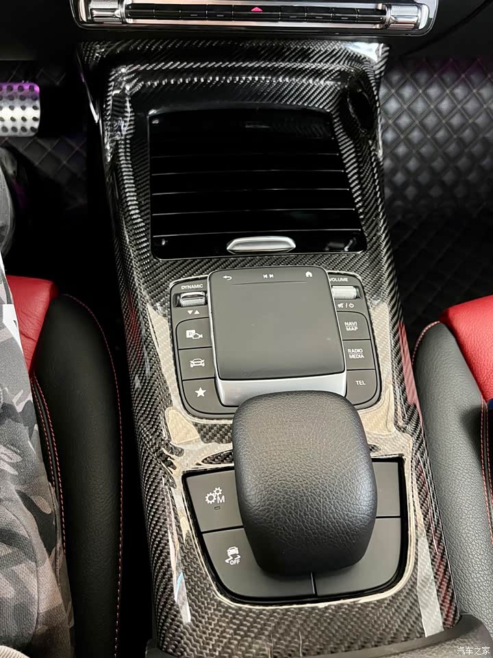 内饰我把所有配件全部更换了碳纤维 虽然亮黑也很运动 但我还是偏向碳纤维