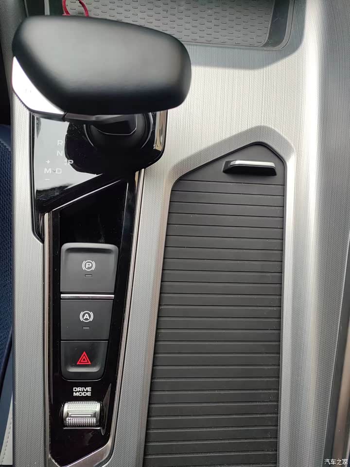 由于采用电子档把,中央通道储物空间很多且分为上下两层,上层的无线充电板和杯架空间足够容纳随身的手机、钥匙等物品,下层储物空间更是十分大,但拿取物品比较不方便。