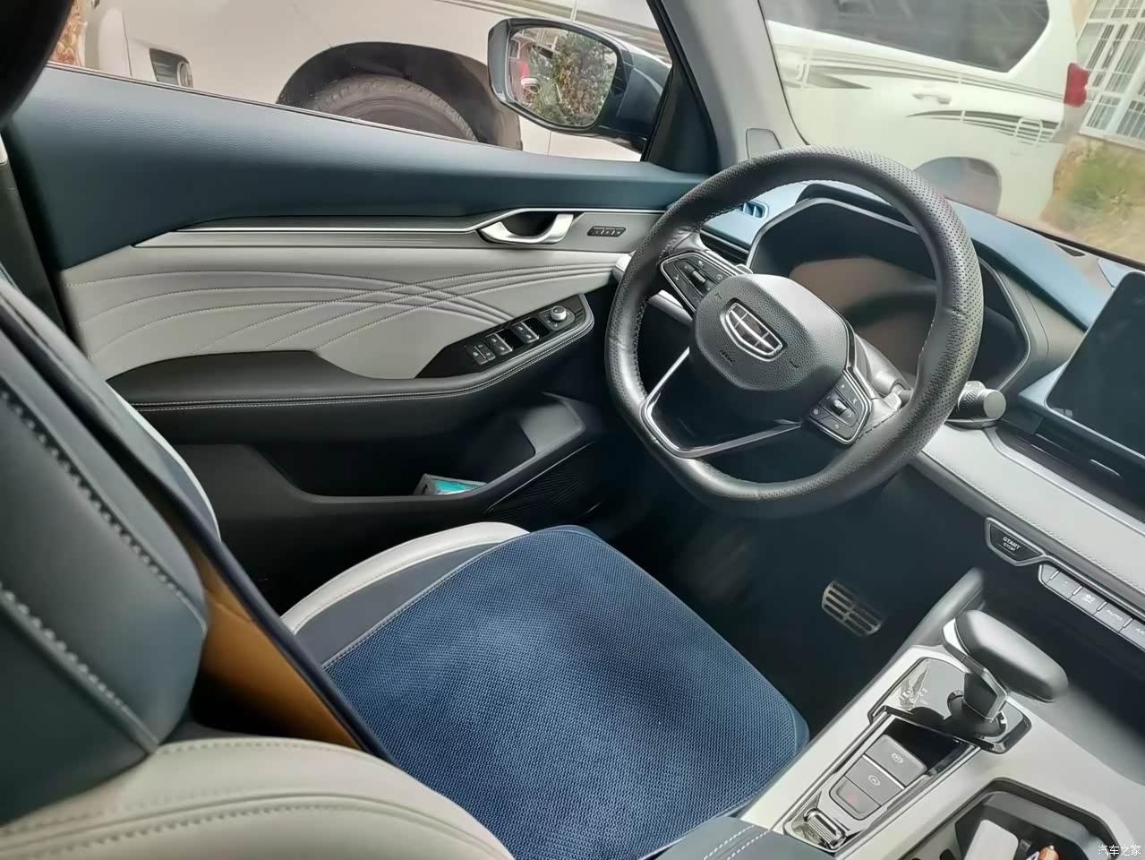 内饰设计很简洁,把很多功能的操作和显示都融合进中控屏里,蓝灰色的配饰令人耳目一新,我第一次见到这款内饰时,不自觉得联想到海水和沙滩。总体而言星瑞的内饰不管是用料做工还是设计配色都超出期待值。