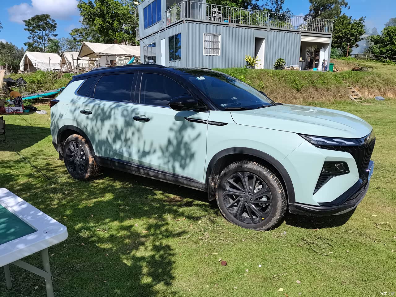 混动确实省油,加速响应快,这个极光绿挺耐脏的