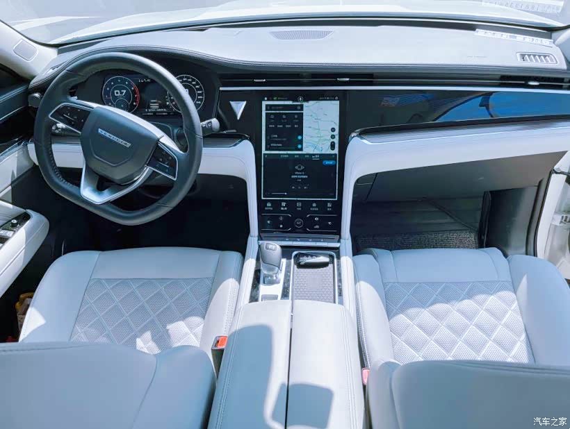 内饰的材质摸起来手感都很不错,中控部分看起来很有层次感,大中控屏幕也很清晰,方向盘也特别实用,整体做工无可挑剔。