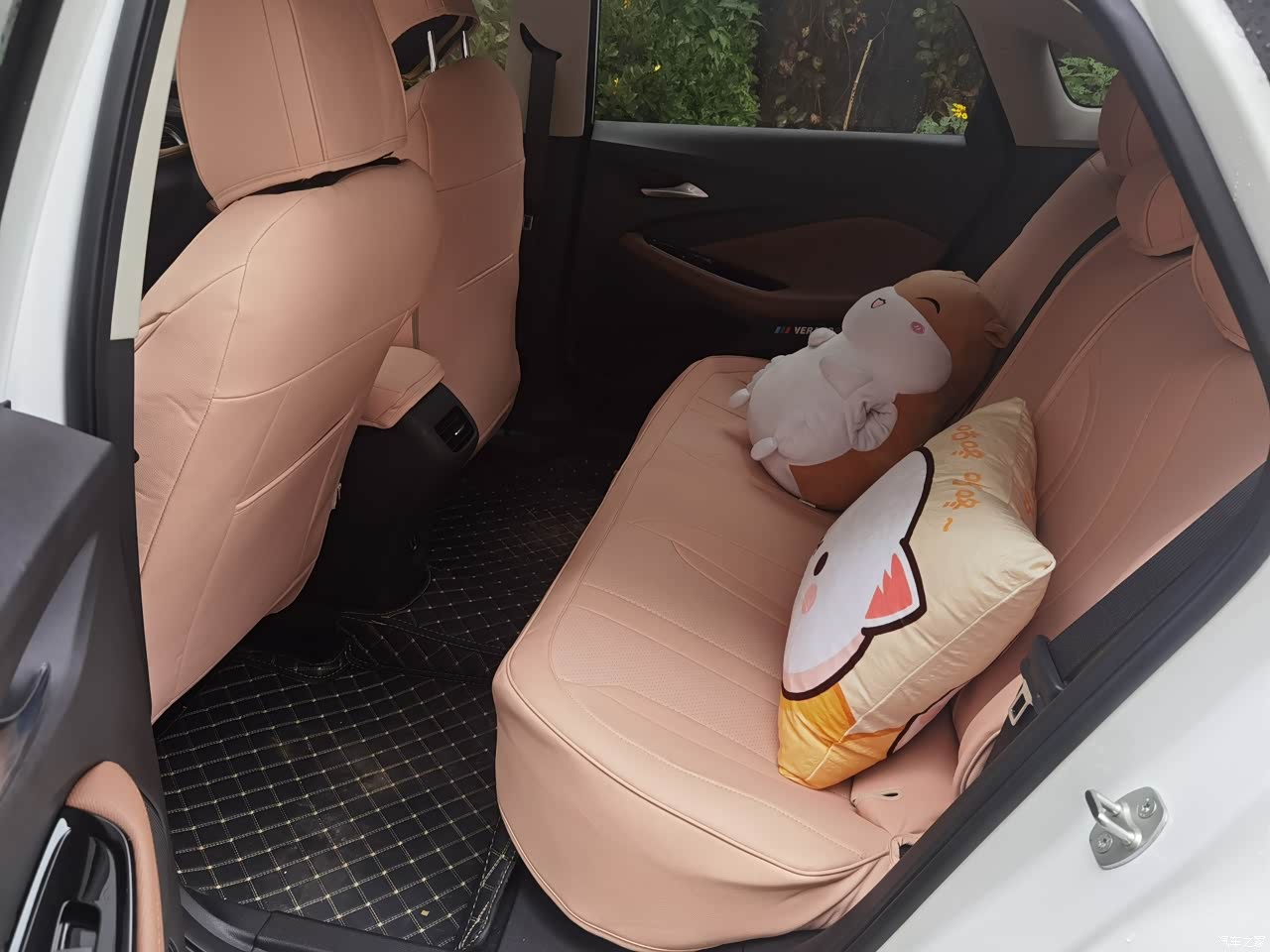 内饰用料挺好的,用了很多软性材质包裹。面板是姜黄色+黑色拼接的,少了一份压抑,多了一丝温馨。后排没有中央扶手,有后排出风口,后排座椅宽敞平整,地台突起比较低,腿部空间非常宽敞。