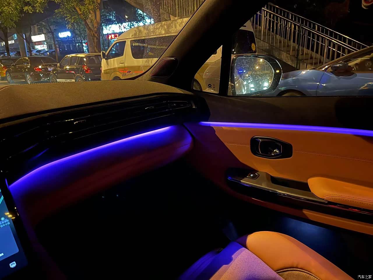 氛围灯10色可选,还可以调明暗,晚上的感觉很棒,我最喜欢这个紫色。