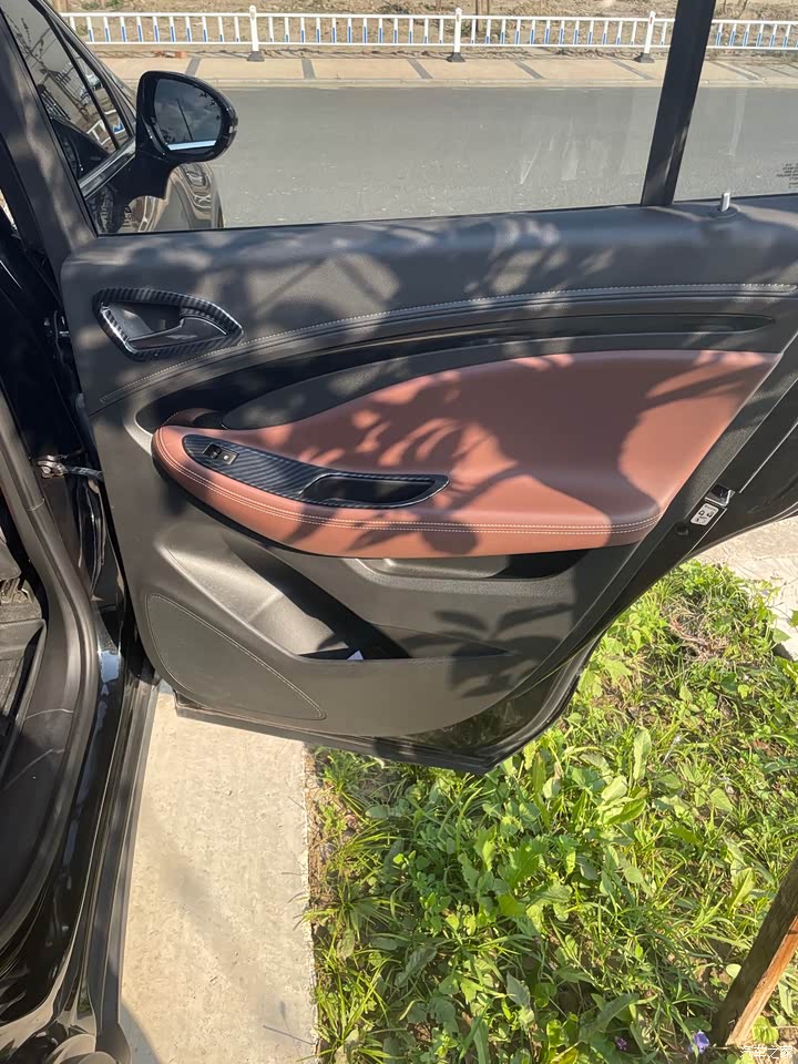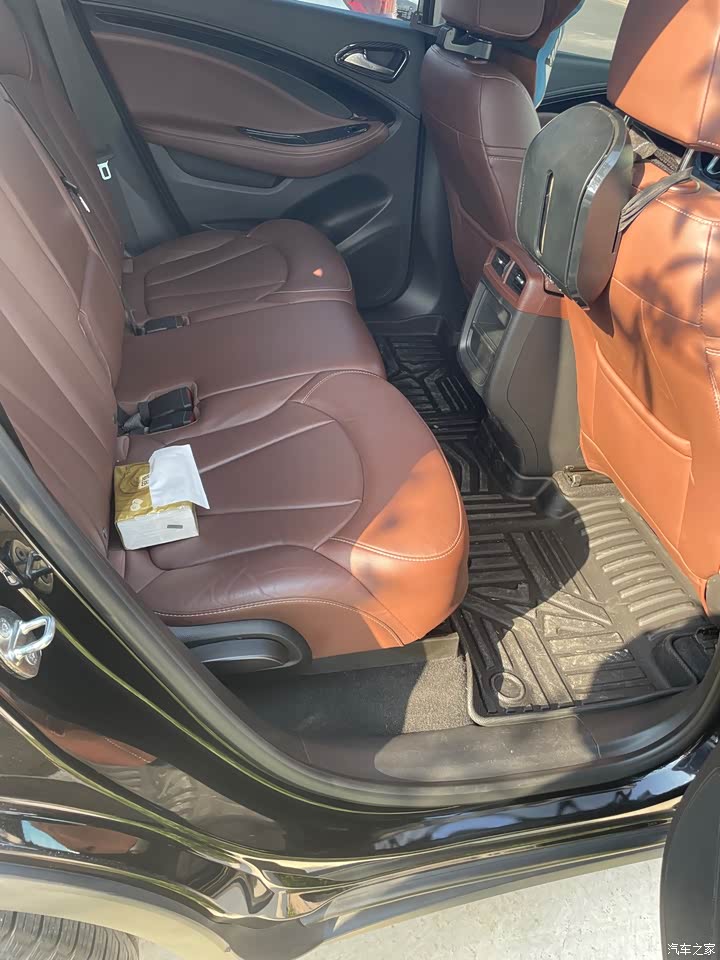 内饰是棕色的,不会像黑的那么沉闷,皮质材质,脏了擦一下就好,也不算难打理,刚买车的时候,还买了个车用的空气净化器,买个安心!