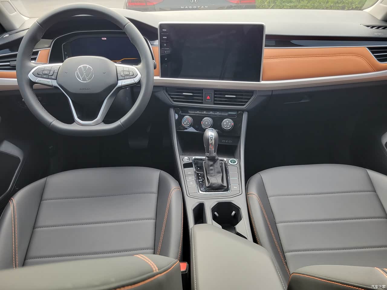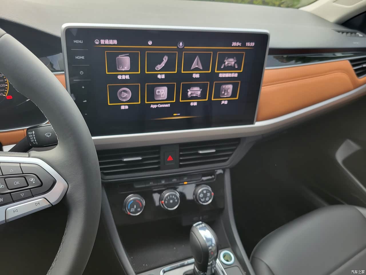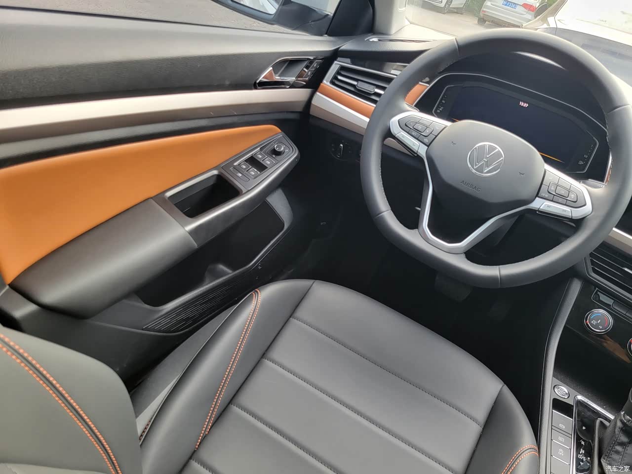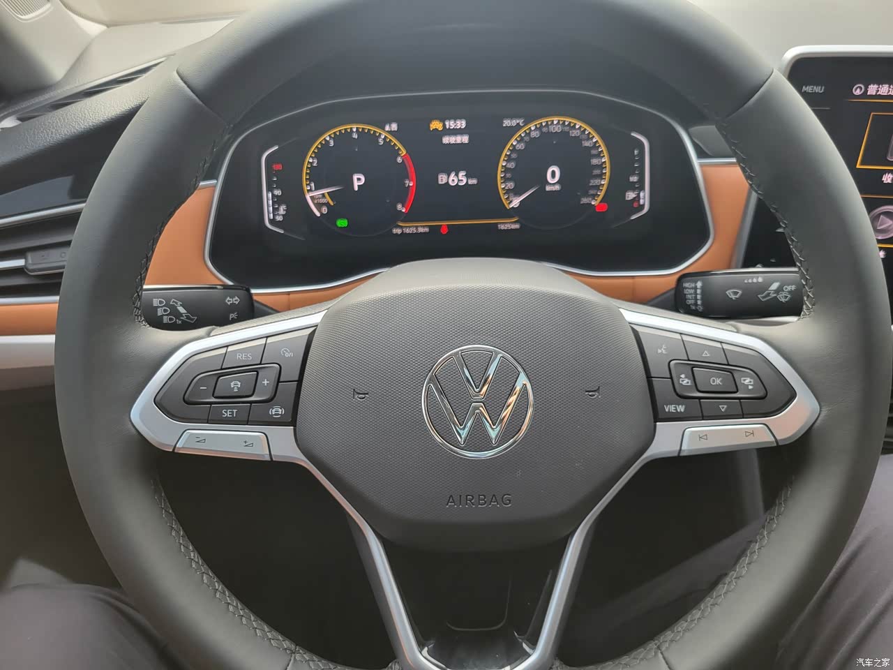 内饰不是纯黑色的了,车门上和仪表台采用了棕橘色的内饰,看起来很有档次,个人感觉比以前的一片黑色好看多了,车机屏幕也换成了一个大屏幕了,看起来没那么小气,方向盘也是最新的款式了,以前只有迈腾上才有的方向盘现在宝来也在用。仪表盘是全液晶的,显示的内容更丰富,而且晚会也更好看。