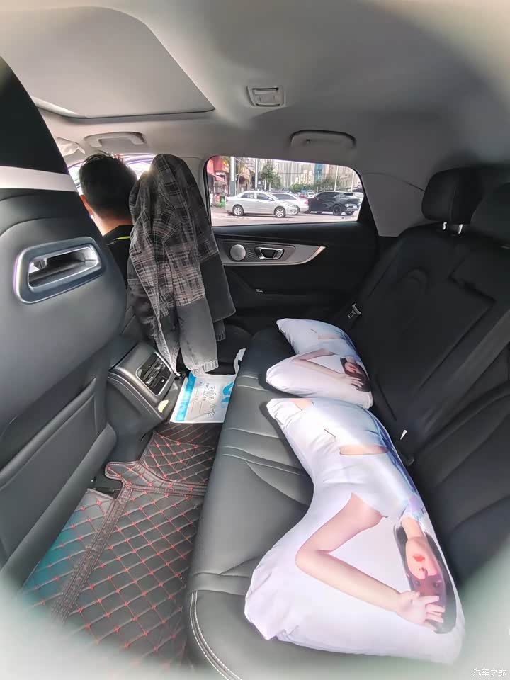 只有第二排做为紧凑SUV溜背造型,第二排头部空间就没那么的理想了 但是为了 溜背设计那是必不可免的 ,个子高点的头部空间距离就有那么一点压抑了 但是那都不是事 自己家用代步 也就逢年过节带上爸妈出去走走 ,车大部分时间都是自己 跟弟弟 弟妹在驾驶,后排就很少乘坐大高个,后排腿部空间自我测试了一下正常坐姿,两拳有益也不会感觉腿施不开 后排三人乘坐空间够用 不会很拥挤 惹是第二排坐两人 那样真的好舒服 二排杯架放下 聊聊天喝喝奶茶