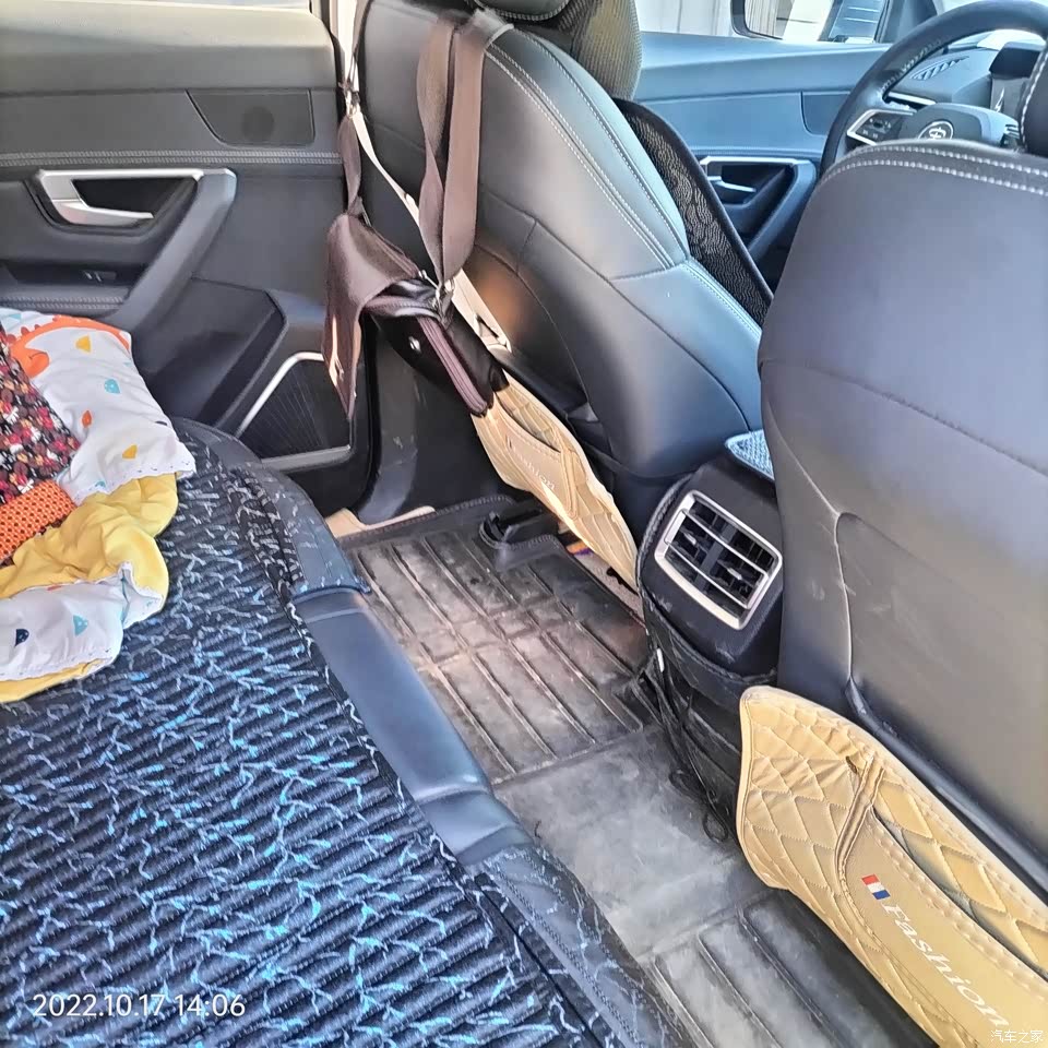 整体空间很大,后排翘腿都没问题,前排腿伸直都可以。