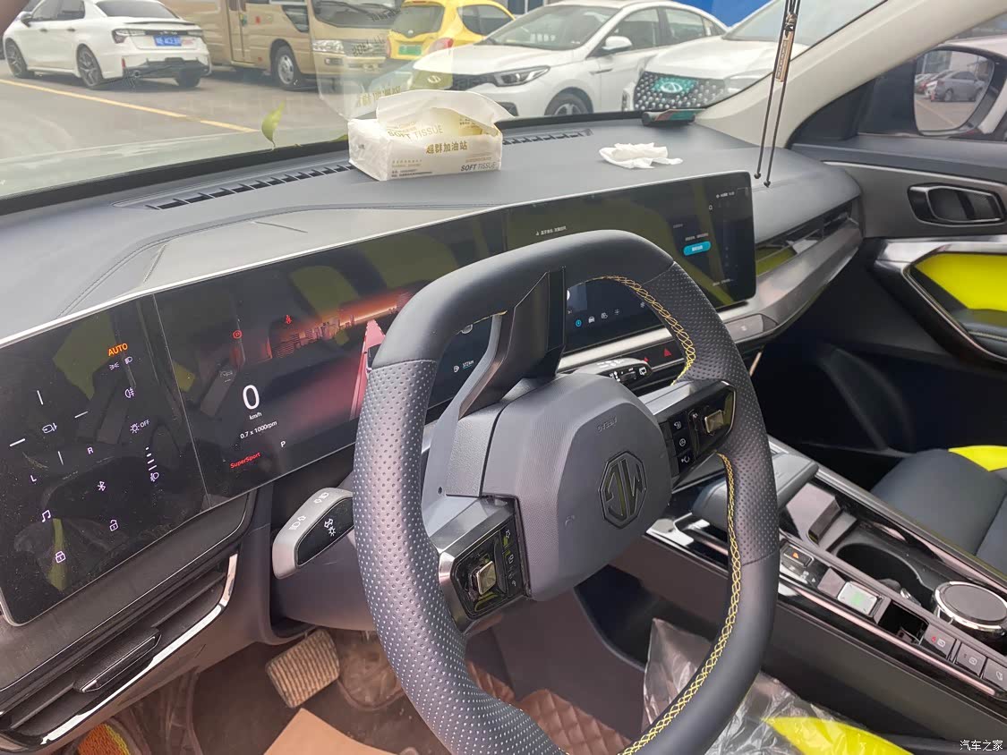 哎,MGone 的话有两款,整体来说我是比较喜欢这一款的,因为这一款看着比较耐看。而且它的中网也比较的帅气,大灯非常的犀利,车身整体来说的现场是非常的运动的,而且它的轮毂超级大,很带感。