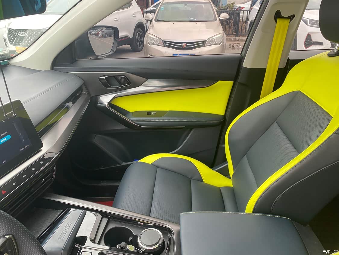 内饰我多多少少有点不太喜欢因为它的颜色确实有一点太绿了但是它的车内的异味还是比较小的,虽然说有点味道,但是新车都有这个问题吧,他的座椅材质的话,是选用的一个环保的材质,而且做的时间很长的话,他不会说很累。还有天窗特别的上档次。
