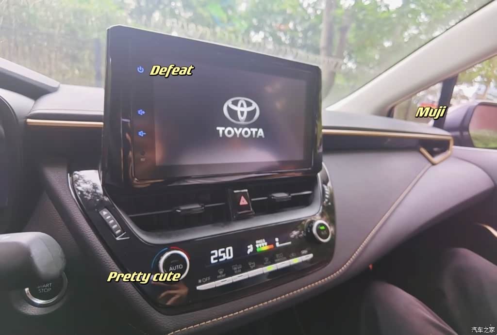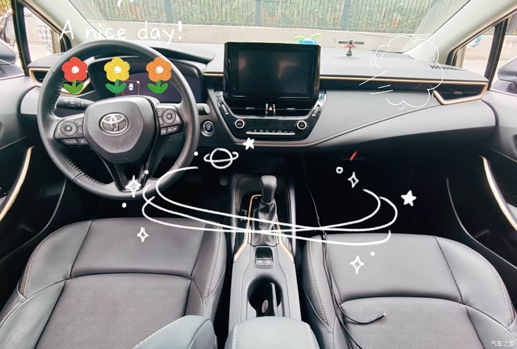 内饰其实看出来了还是丰田一贯是的设计,没有什么新意看上去就是中控屏幕加上按键式的设计没有什么很新颖的地方,就是这个装饰条的搭配颜色来说有点区别,内饰现在来说异味感稍微重一点呢,现在开窗通风了几天效果不是很好,我估计还得各数月才能没有味道了。
