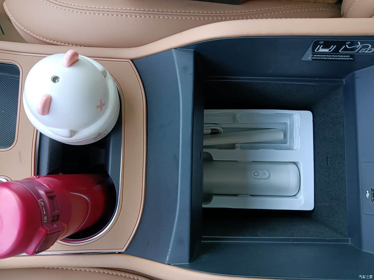 中控放杯子的地方,我喜欢一边放杯子,一边放车载香薰喷雾,淡淡的香味加喷雾滋润皮肤两不误,中控箱蛮深的,车友推荐话筒和迷你吸尘器放下层简直是绝了,上层当然都是被我的太阳镜,护手霜,补妆细软所霸占,不得不说女人的下玩意太多了。