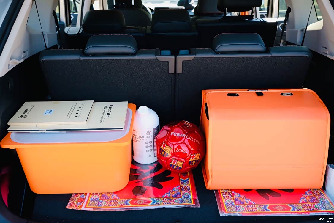 第三排放倒,乃至第二排也放倒,咱就不多说了,空间大家都明白。这里我拍了两张第三排安置好以后的空间,大家可以看下,我还可以放两个储物箱,或者一个大的旅行箱。个人觉得,满足一家短途周边出游也是够了,但长距离带很多物品肯定不够。
