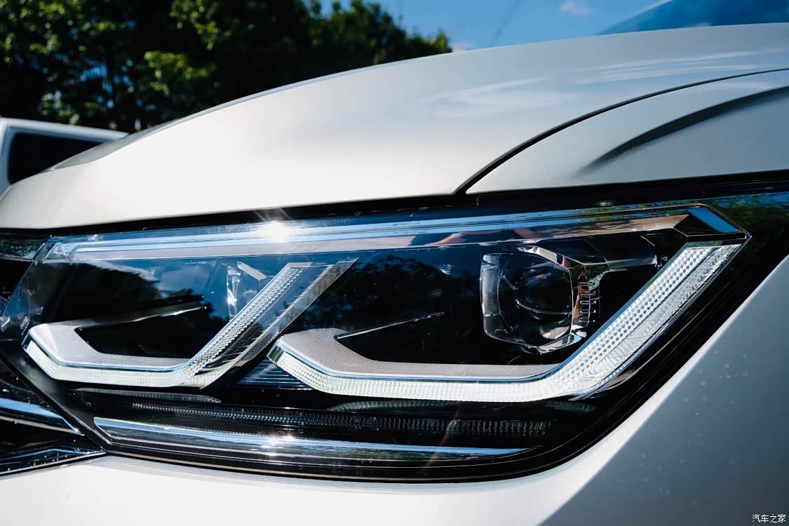 这辆车最吸引我的地方就是车头设计,给人以足够的视觉冲击效果。双镀铬进气格删直接和车前大灯组整合在一起,大灯外眼角拉长,一直延伸到前轮眉处,一改上一代方正老气的中年老成,很赞。在黑色rline运动套件的加持下,车大灯组、贯穿式日行灯、格删这些元素被揉捏、融合得完美无死角,兼具运动时尚、大气商务和和谐居家多种风范!作为80后的我,就这样被打动。有没有和我一样的80后朋友,有同样的第一眼感觉?