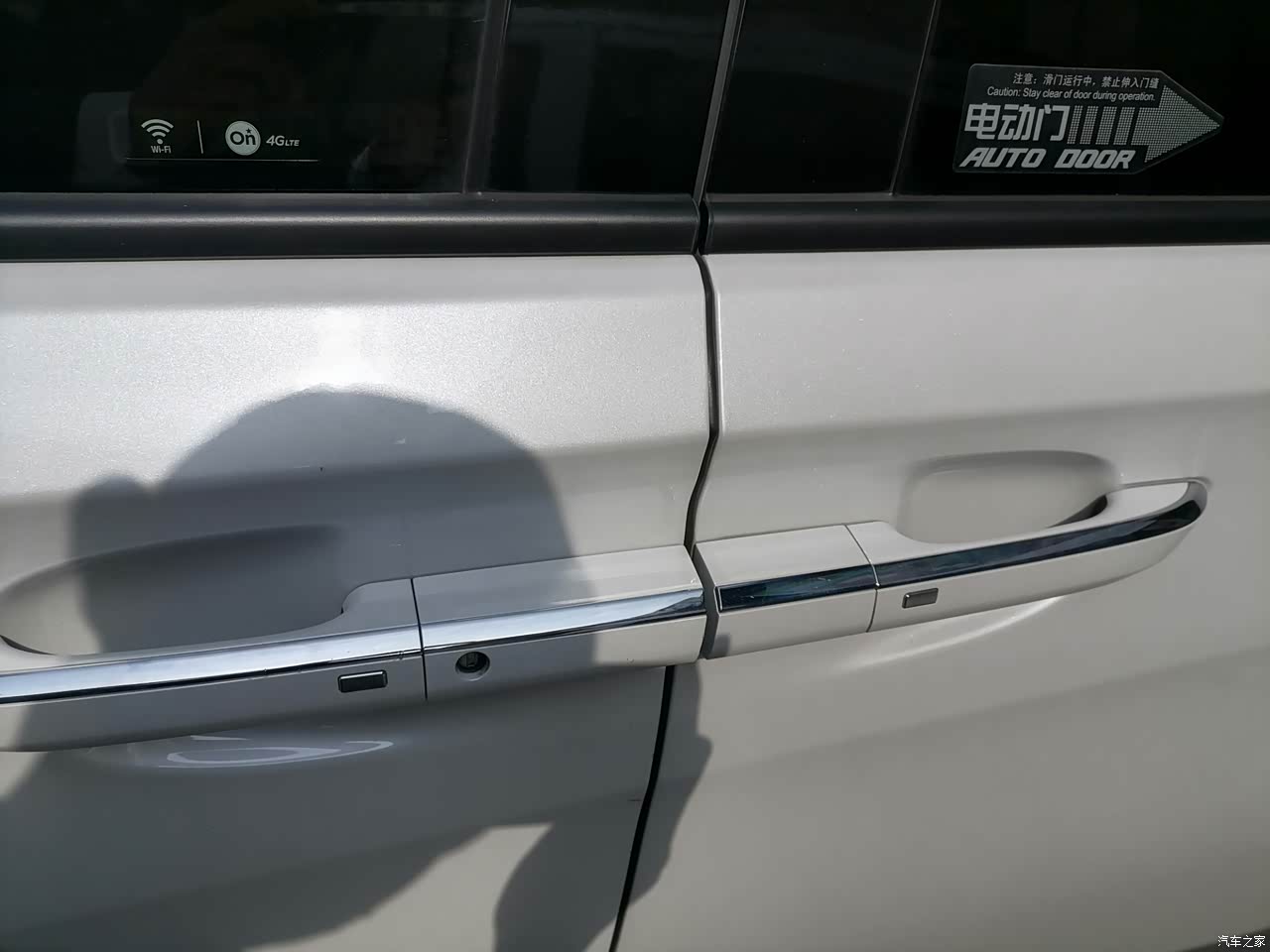 左右两边中门和后备箱是电动的,可以用遥控钥匙控制,开启的时候很上档次。
