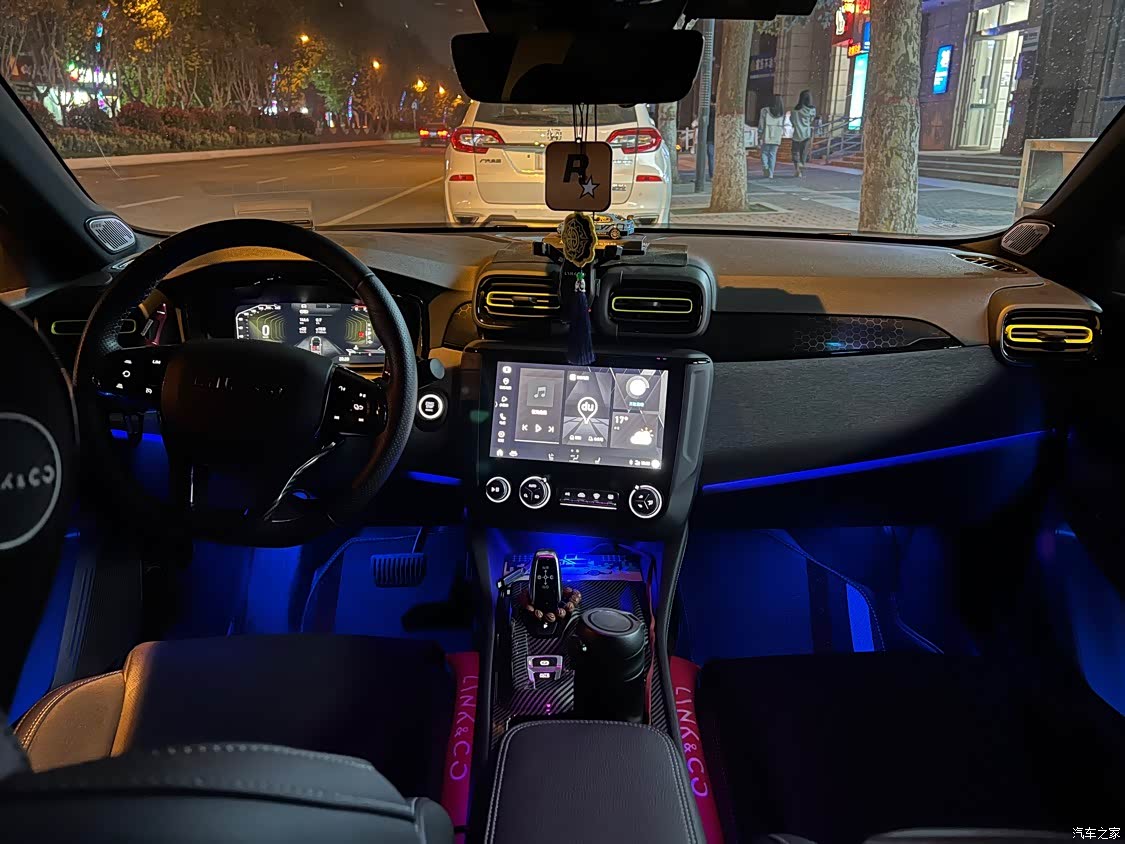 03的内饰总体还是非常好看的,但是单色的氛围灯实在太丑了,夜晚开车一点氛围感都没有,果断更换了64色氛围灯,还把空调出风口的镀铬条更换了绿色,再加了一些假碳纤维的覆盖件