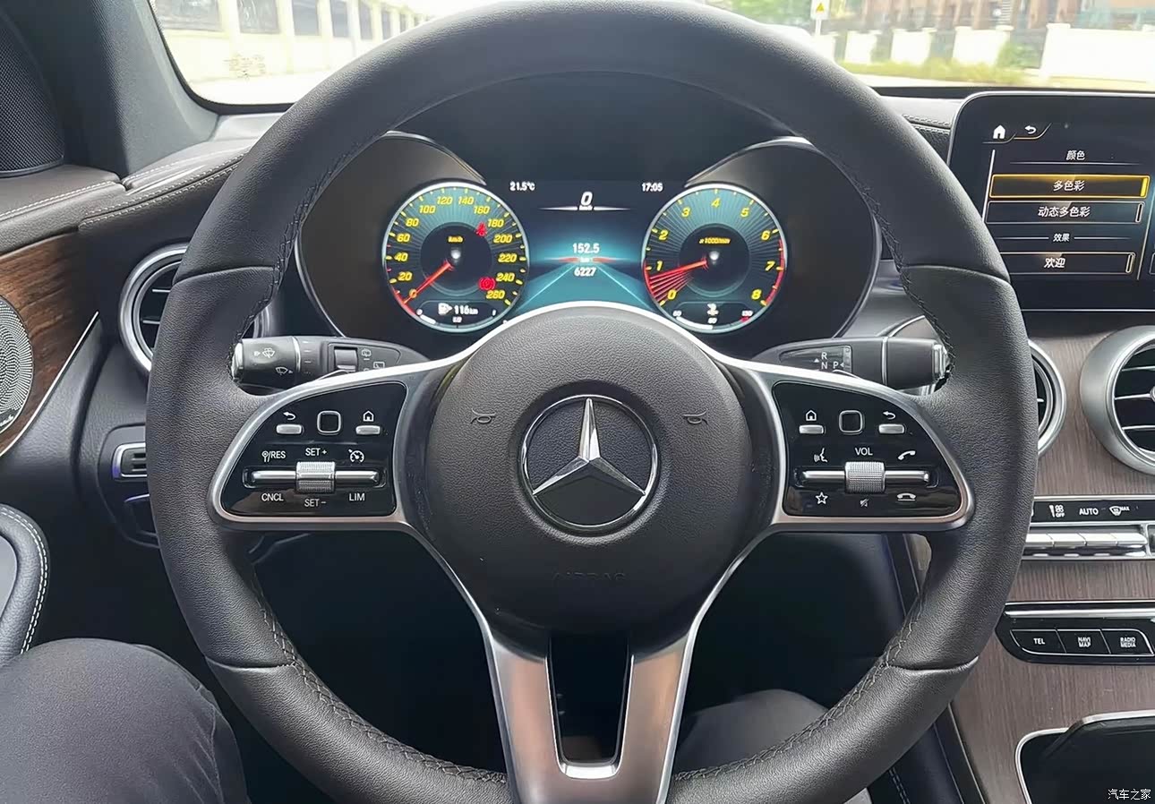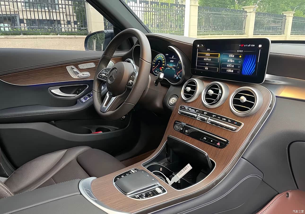 按理说一款SUV车型的外形都是比较粗犷的狂野的,但是GLC真的是粗中有细,流畅的前脸,简洁的线条,特别是满天星的中网配的奔驰的大标,一切都显得细腻动感还有浪漫,外型无疑是亮眼的。内饰也同样做的非常细腻高级,皮质座椅,中控和车门做的有木质纹理的面板,看起来豪华有质感。内饰还有多色的氛围灯,确实颜值非常的可以。