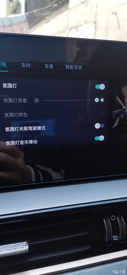 车子自带64色的氛围灯,可以设置成自己想要的的效果,随驾驶模变换或者随音乐变化