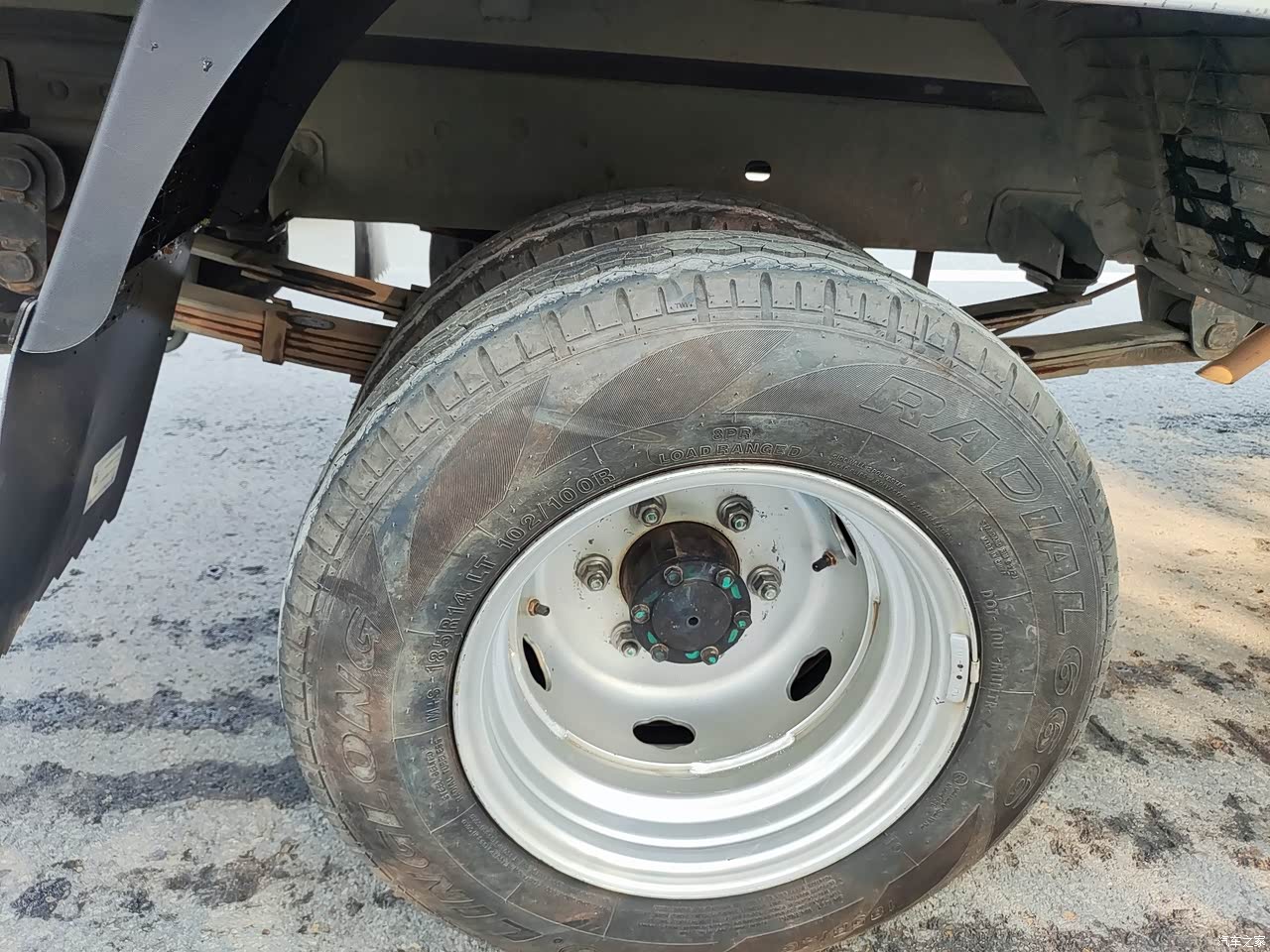 小货车的外观,卯实的车头,结实的后厢,宽厚的龙门架,现在看哪哪好看,185的大轮胎,7+4的钢板弹簧,拉起货来绝对没问题。