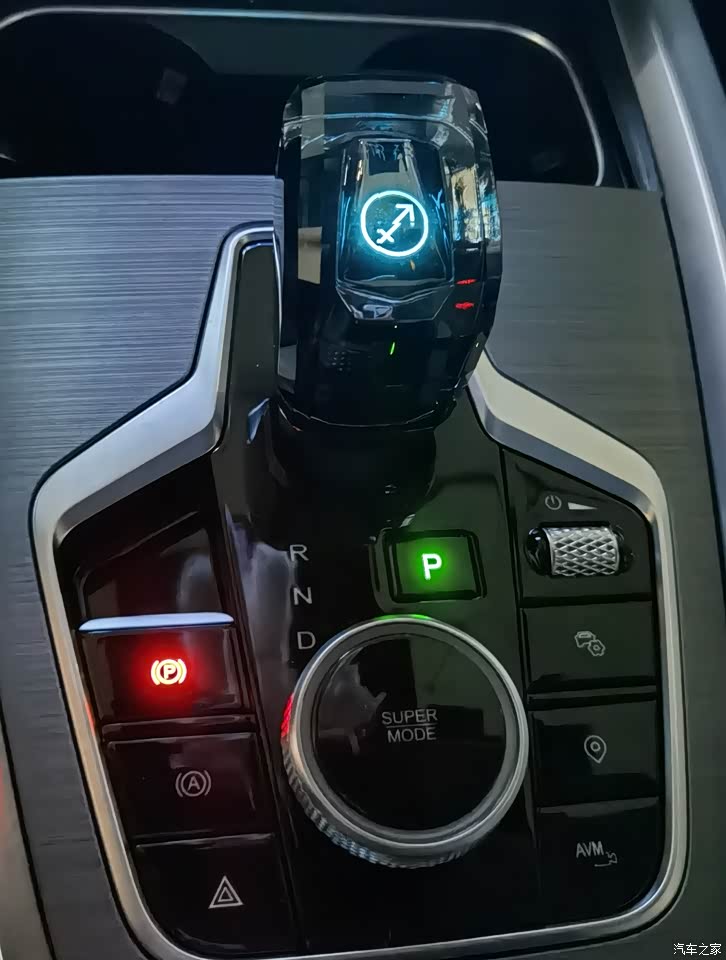 选装的定制星座水晶档把在启动状态下有还夜光,非常漂亮~