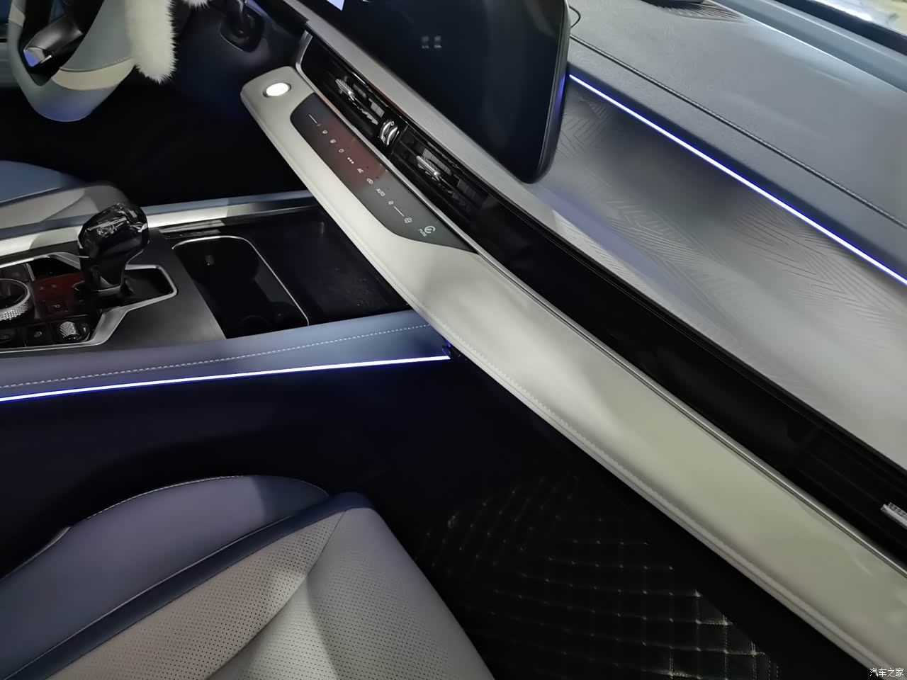 手能接触到的地方,基本上都是软皮质包裹,还有一个24.6英寸的大连屏,很有科技感。
