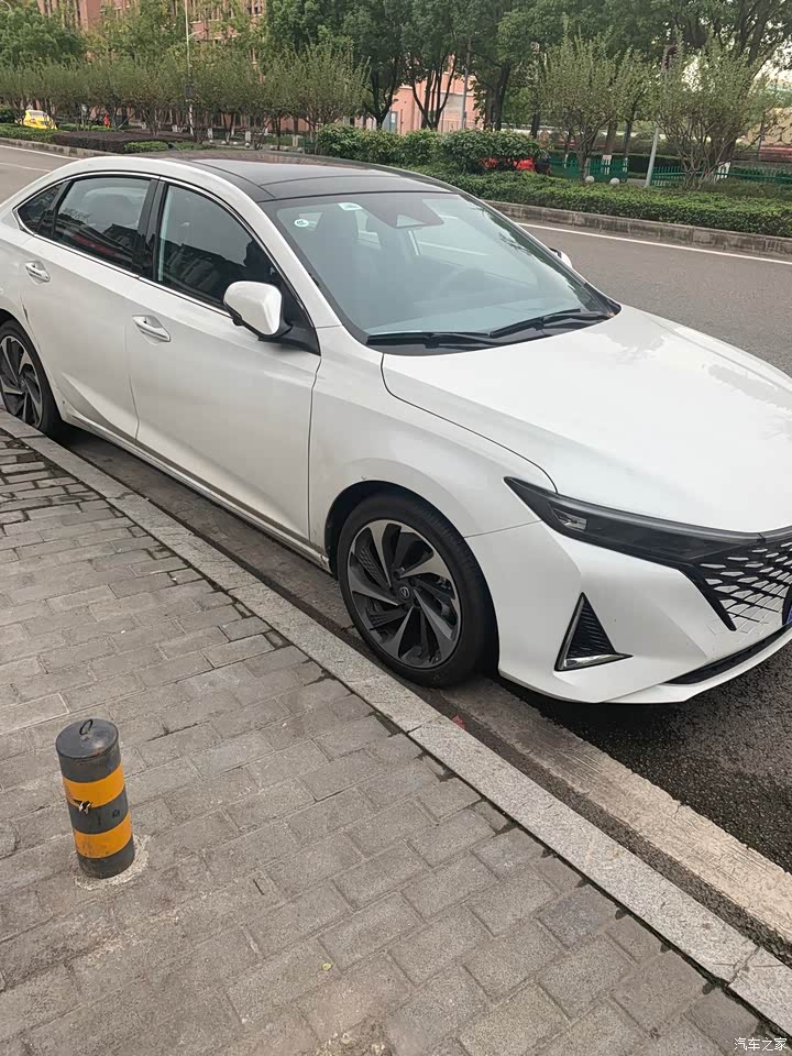 我是第一次买国产车,和自己的思域、卡罗拉、朗逸对比,此车真是良心用车,除了动力略差于本田,其余配置、外观、智能、科技、底盘调教维度已经完胜合资了,如果你最求最强动力目前建议还是本田,如果最求其他任何一样,此车我强推 外观: 外观非常漂亮,特别是前脸,第一眼望去感觉是“年轻、气质的美女”,在其他车企很难看到 内饰: 屏幕很大,很多软设计,唯一的缺点刚提车时有点味道,不过通通风就好了 空间: 我1.75的净身高,不论前排后排余量都很大,后备箱空间也很大,日常出行完全没有问题了 配置: 我买的顶配,配置很高,1、抬头显示,把车速、导航都显示在车正前方,再也不用看仪表了;2、蓝牙钥匙,从此,开车再也不需要钥匙了,且可以千里之外控制车辆,如果你和车在不同的城市,也可以控制,可以分享蓝牙钥匙给别人驾驶车辆;3、自带前后左右四个方向行车记录仪、自带车内WF;4、手机无线充电(只有顶配才有无线充电也是我买顶配原因)这四点是个人最惊艳的地方,其他还有很多就留给大家自己探索吧 驾乘感受: 1、油耗:4000公里了表显6.9,最近加一箱油可以跑900多公里,没有算过真实油耗是多少,感觉油耗还挺低,可能和驾驶习惯有关系,前面开车有点猛,当你柔和来开感觉还挺不错,我习惯开normal模式,舒适动力稍慢,而运动又太快 2、整个动力响应,平时的加油超车,挺快,唯一的缺点是冷车起步就快速的开的话动力有时候会特别强感觉不舒适,待水温正常后,就OK了,所以我们开车刚起步不要着急大油门,这样不论什么车都会伤车,对比了下动力还是不如思域,但是比卡罗拉、朗逸强多了 3、整个底盘很扎实,但是驾驶起来非常的舒适柔和,以前自己的思域、朗逸、卡罗拉对比了一下,他们是硬梆梆的,长安真的是在底盘调教下了很大的功夫 4、智能驾驶: 你好长安就可以让车机自己工作了,非常方便,车机自带流量,主动避障、车道偏离提醒而且很多模式可以选