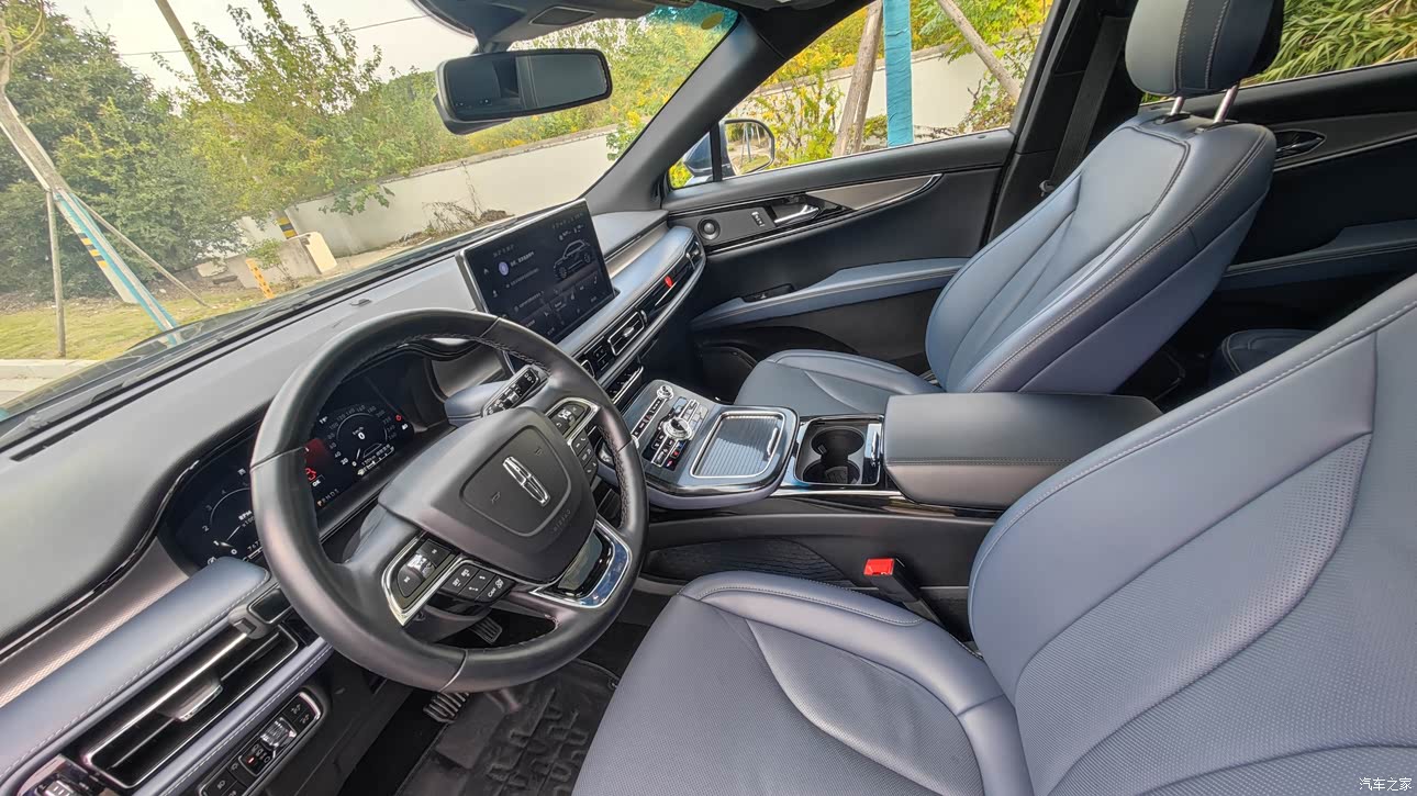 内饰就是典型的美国车了,手能碰到的地方都是真皮包裹,我没选棕色的,感觉棕色是真的有老气了,反而这个蓝色内饰非常的新颖好看,当然了,这个东西的因人而异的