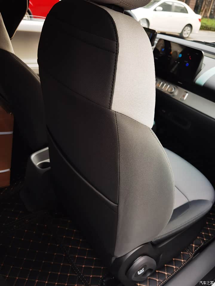 内饰硬塑料为主,座椅为织物座椅,极大的适应了冬夏环境,不像皮革的夏天非烫,冬天拔凉。总的来说设计和配色都非常时尚,通过不同材质的肌理搭配,甚至有高级感,没有廉价的感觉。