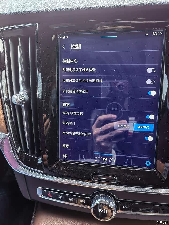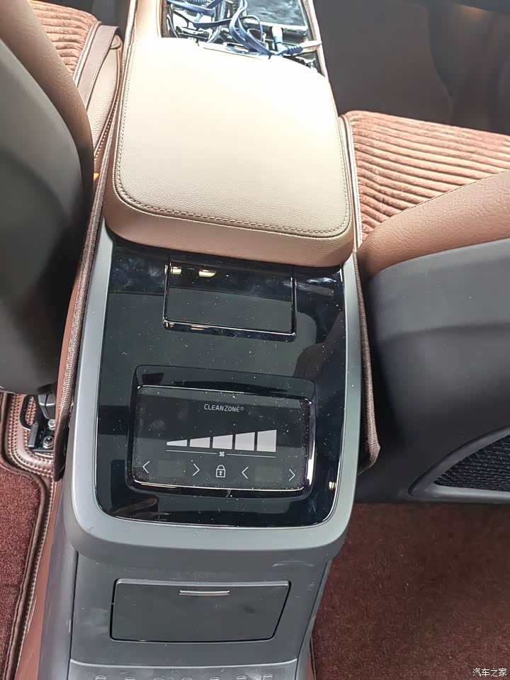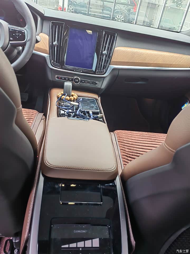 内饰属于简约但不简单的那种感觉,乍一看很一般,越看越耐看类型的(曾经一度追求BBA的豪华内饰)内饰黑棕为主,实木装饰条也很有档次。重要的是这车内一点异味也没有,根本没有所谓的新车味,看来沃尔沃对于环保健康上下足了工夫。竖向屏幕独树一帜,别家的都是横屏,沃尔沃非要弄个竖屏,但是这竖屏用习惯了还真好用,就和操作手机一样。