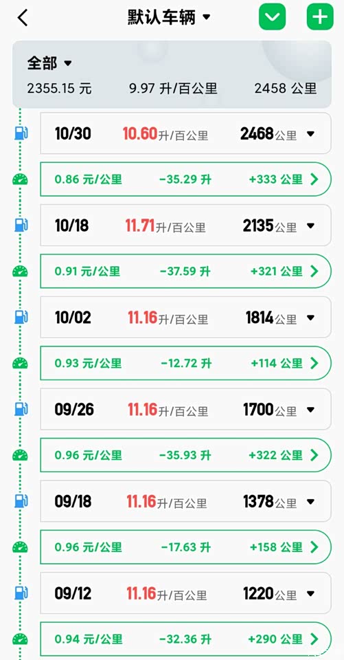 市区油耗是真的高,我每天往返10多公里吧,可能是开得路程少,油耗比较高,差不多1块钱一公里了,有点小难受😣