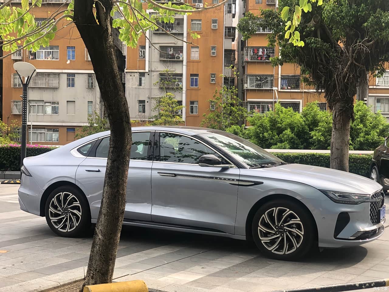 冰川蓝色的配色非常豪华科技,一个有梦想的男人肯定不会拒绝这标配颜色,流线型的线条感和贯穿式车头设计非常酷炫,超大的全景天幕感受四季流动。
